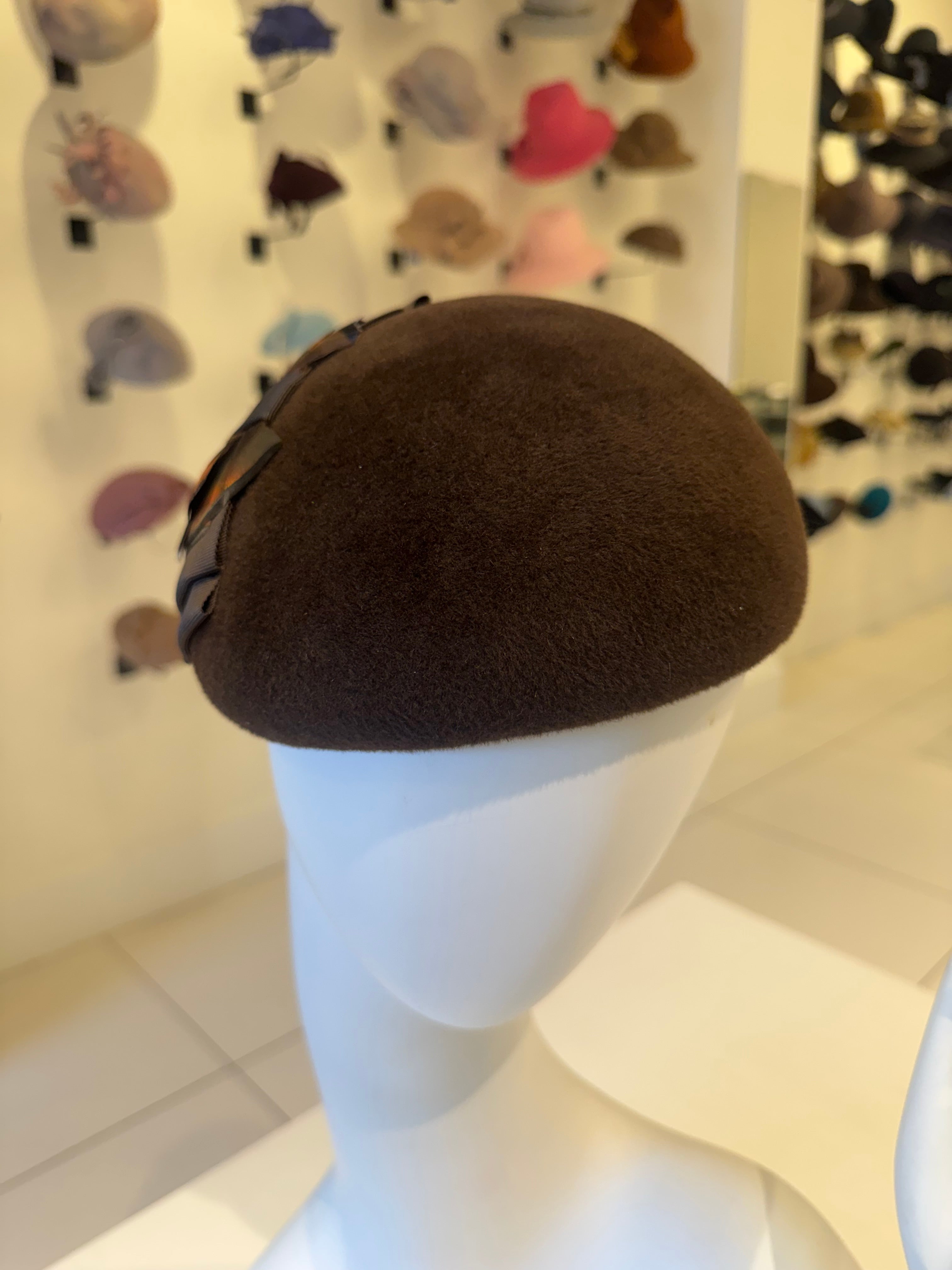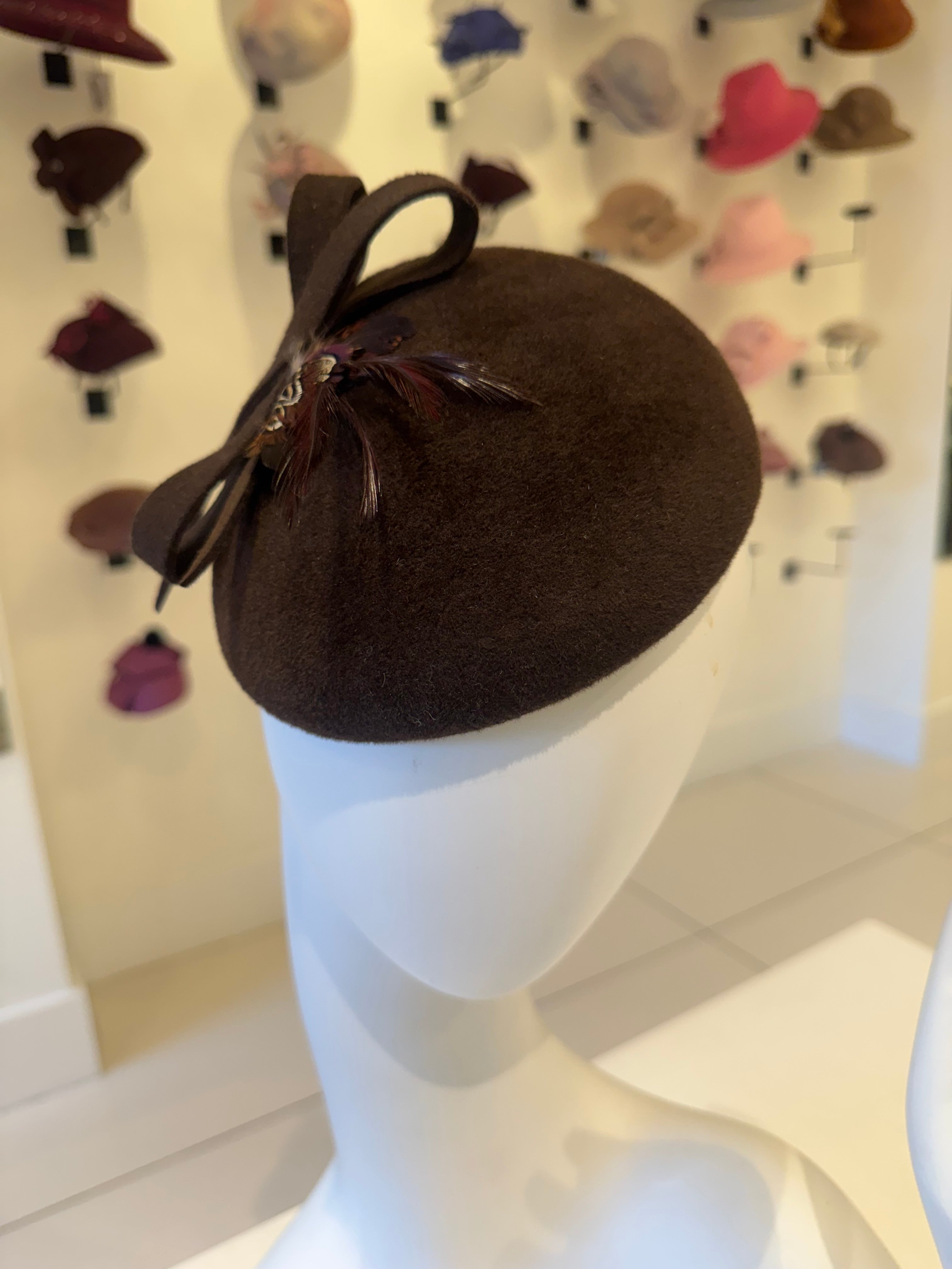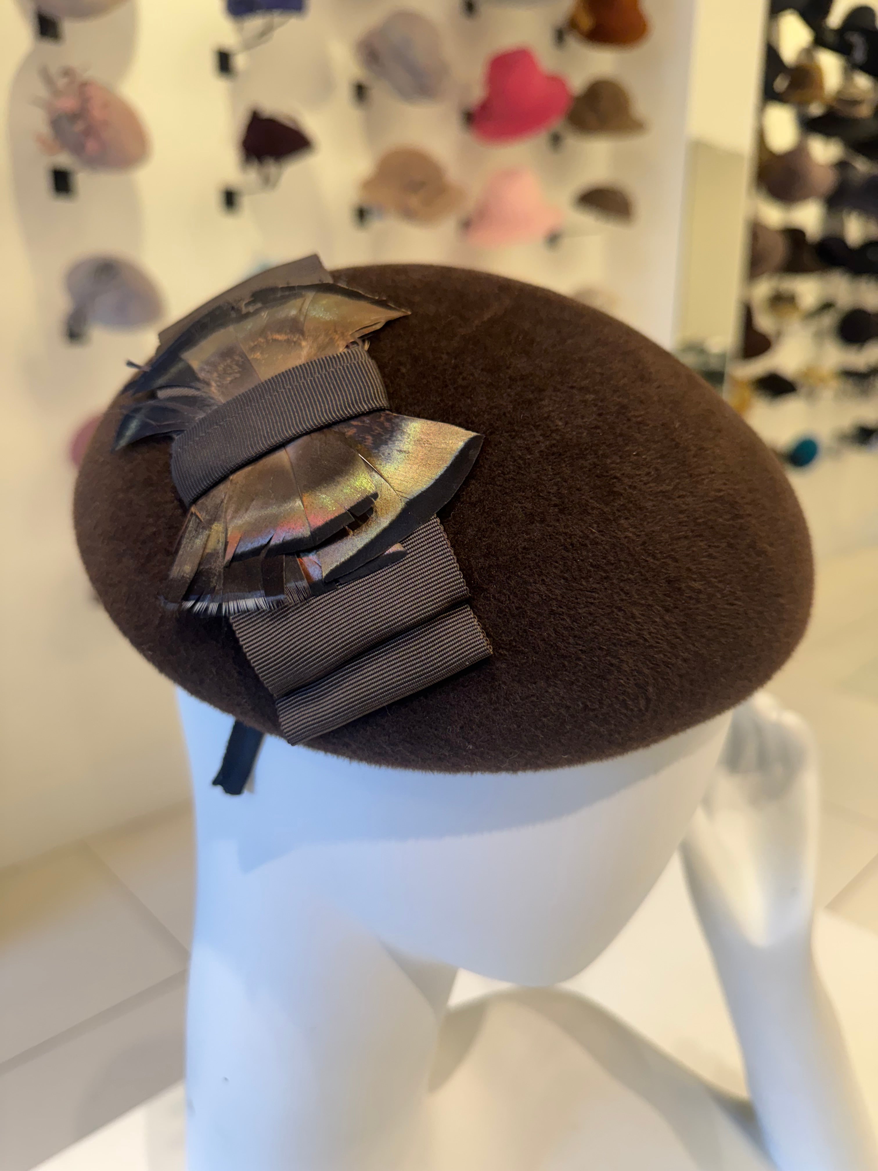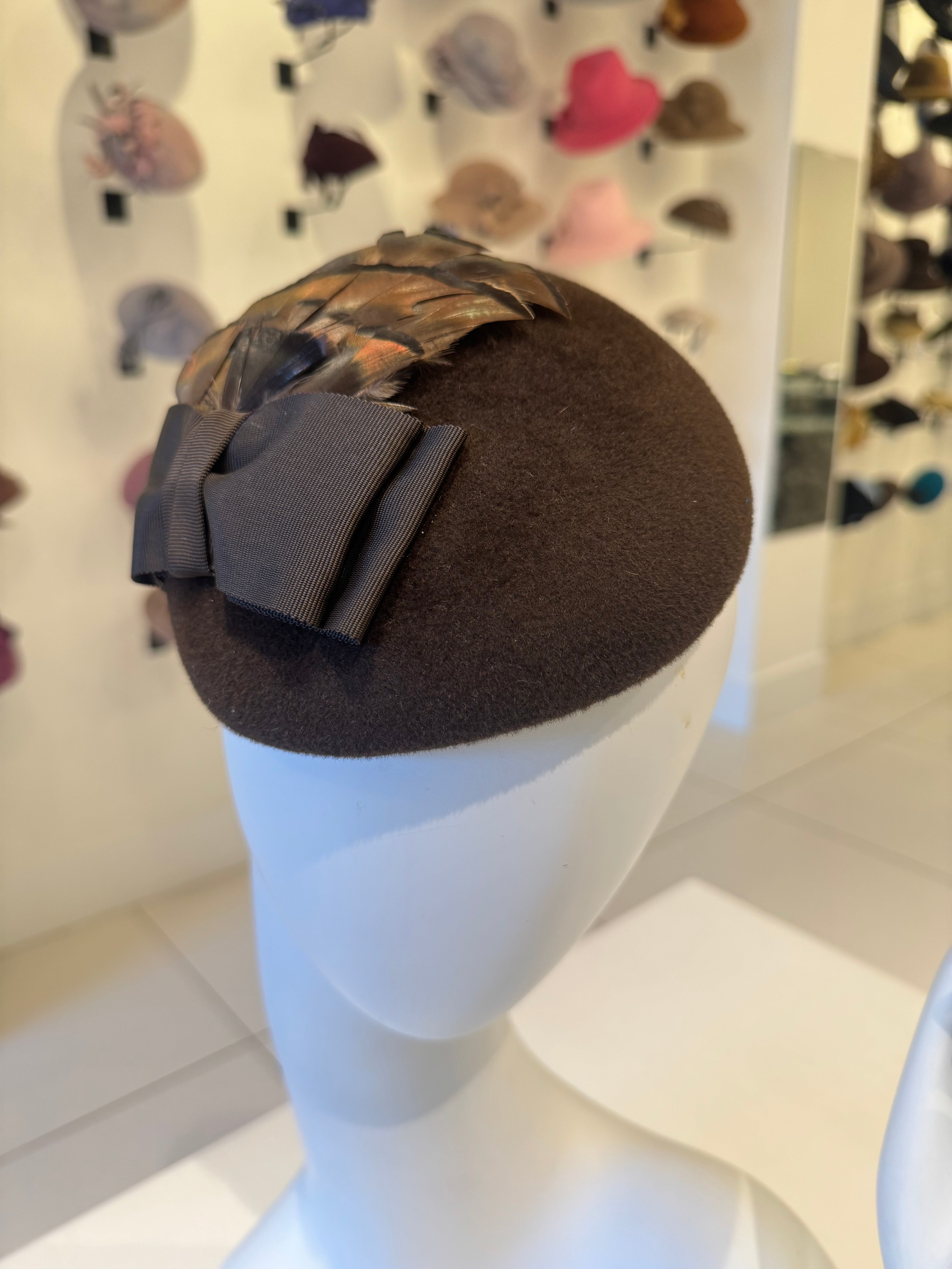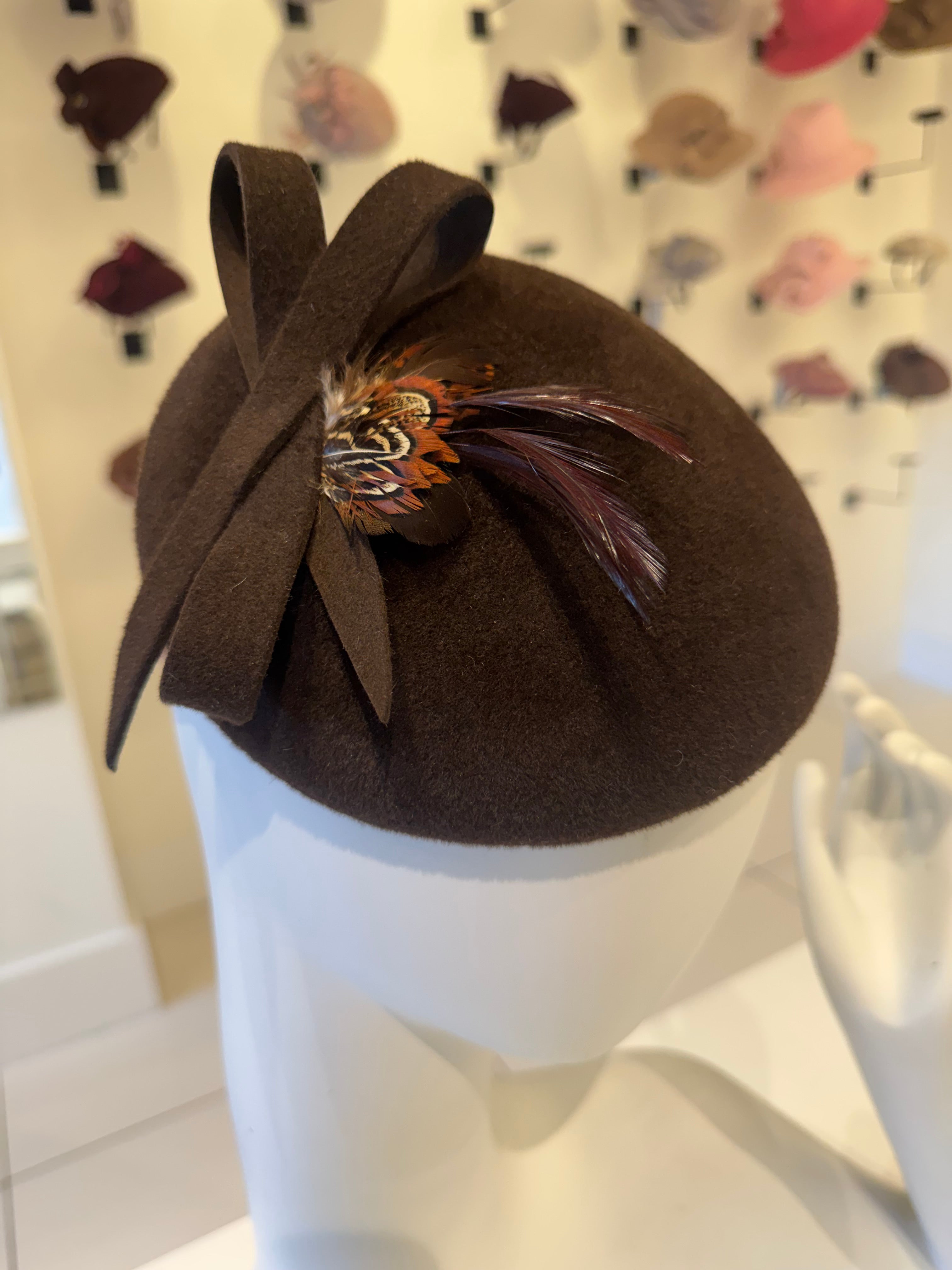 Chocolate Brown Velour Fascinator With Bow & Feathers
