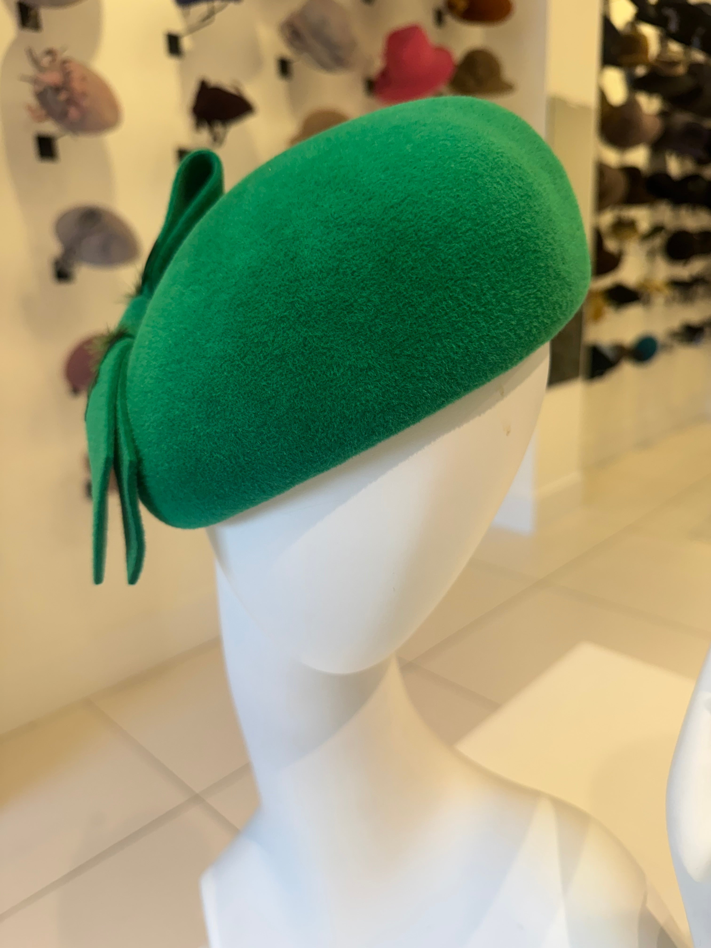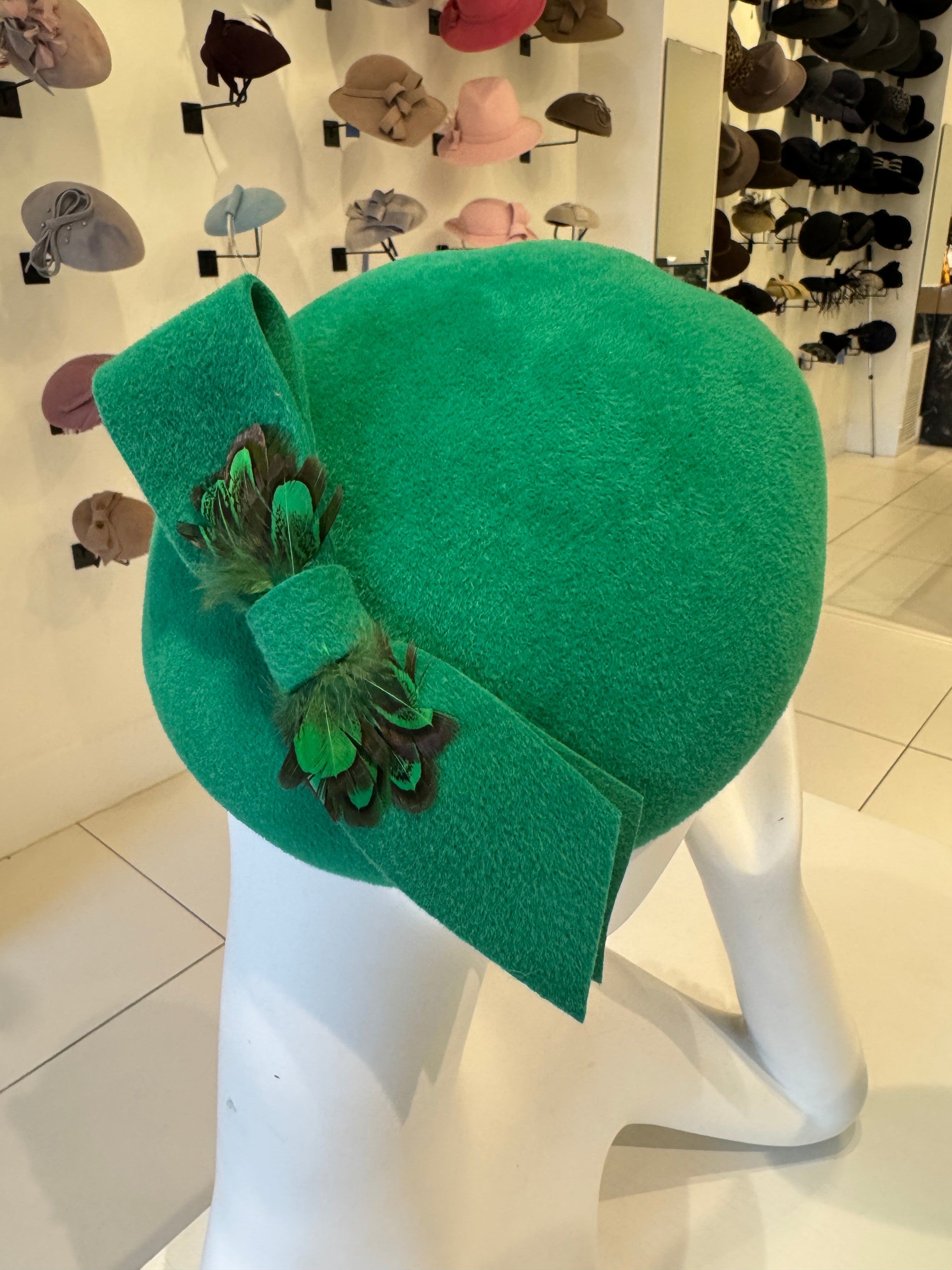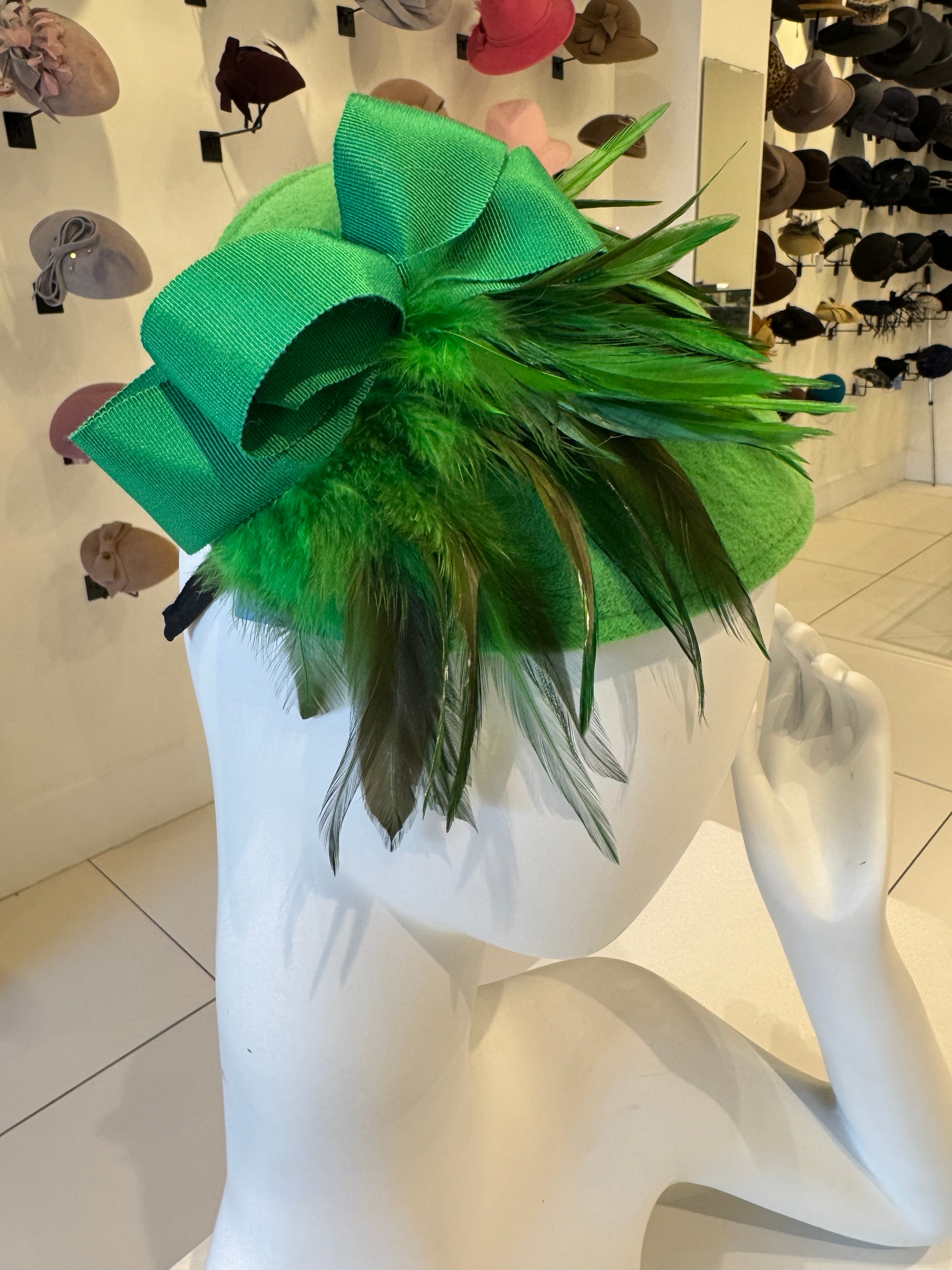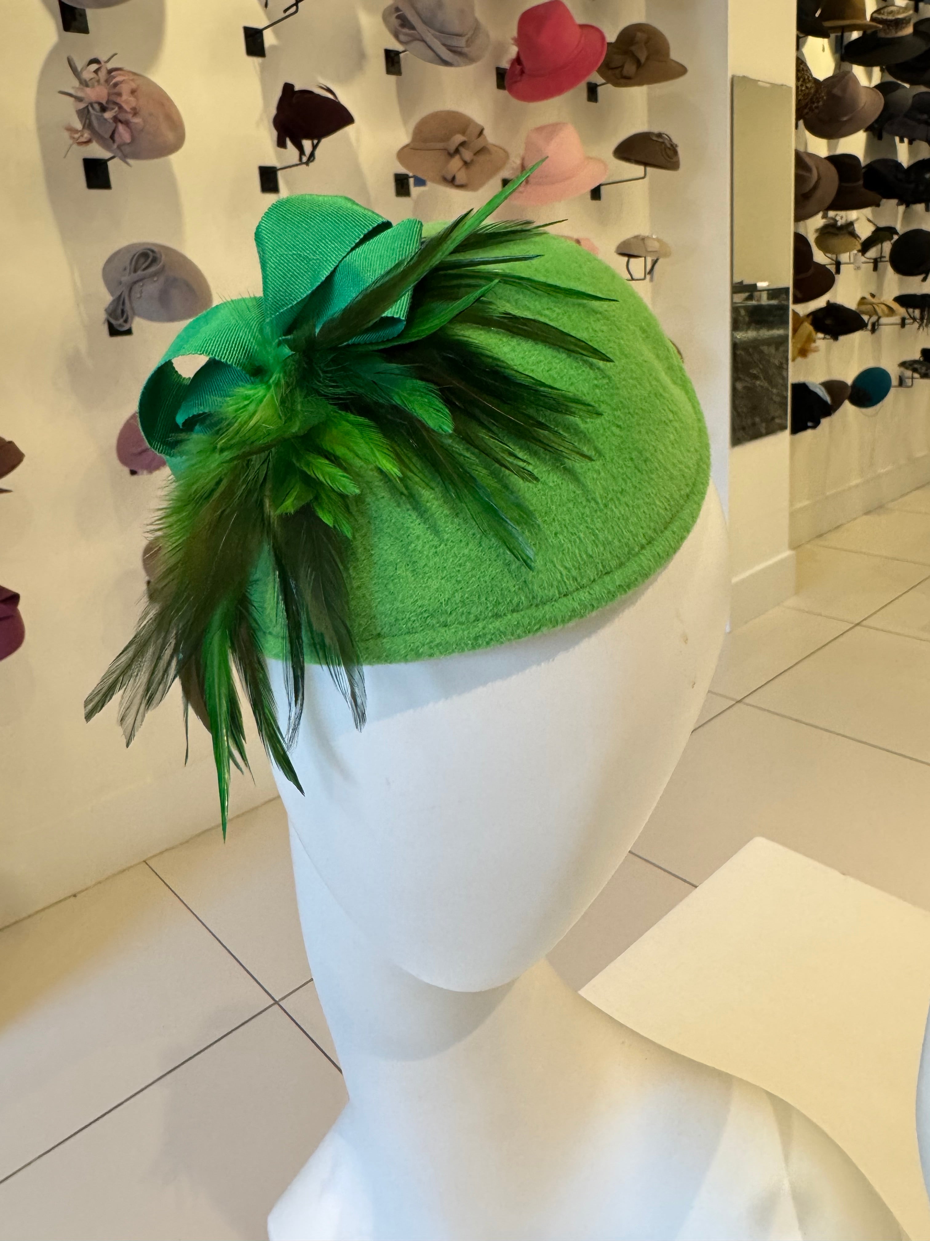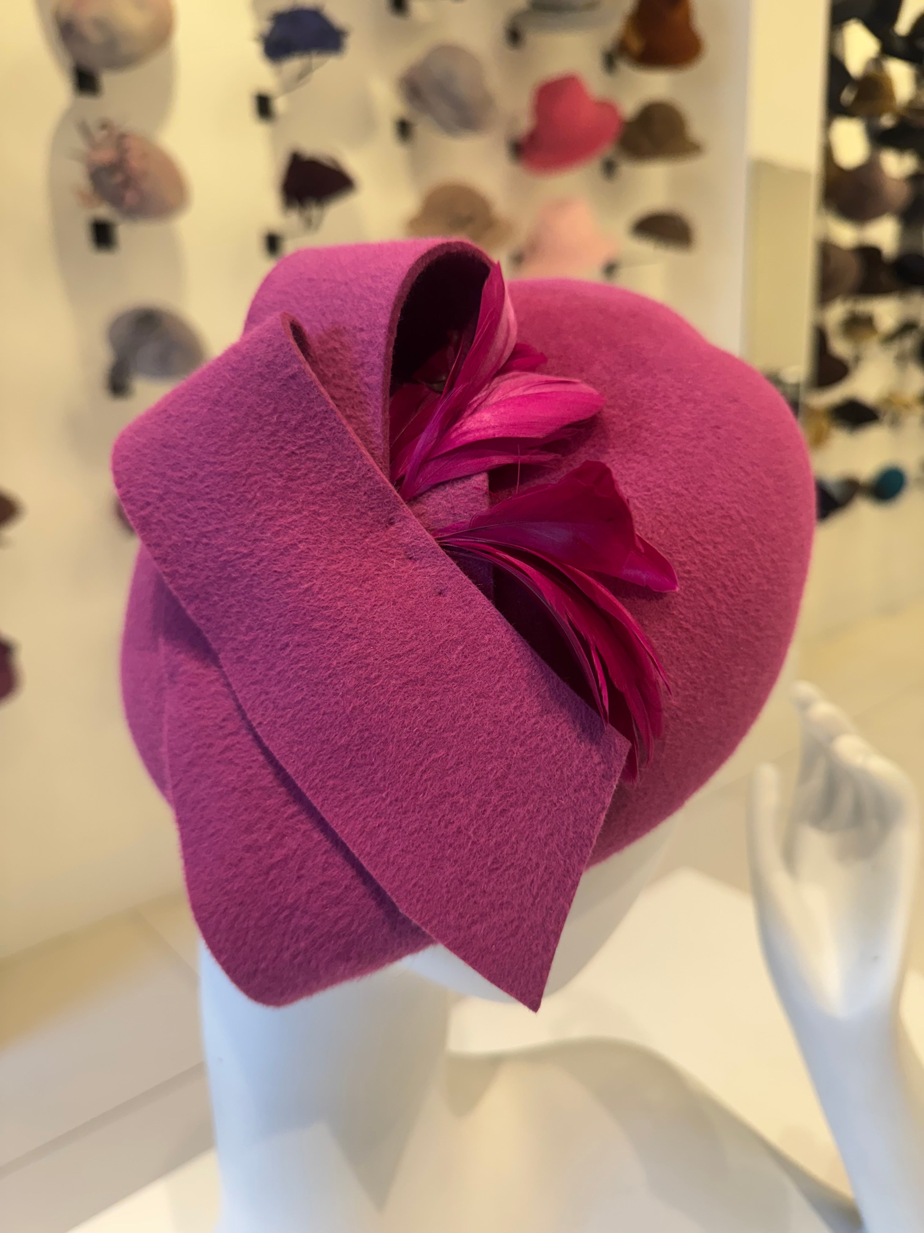 Wine Red Velour Fascinator with Bow & Feather Detail
