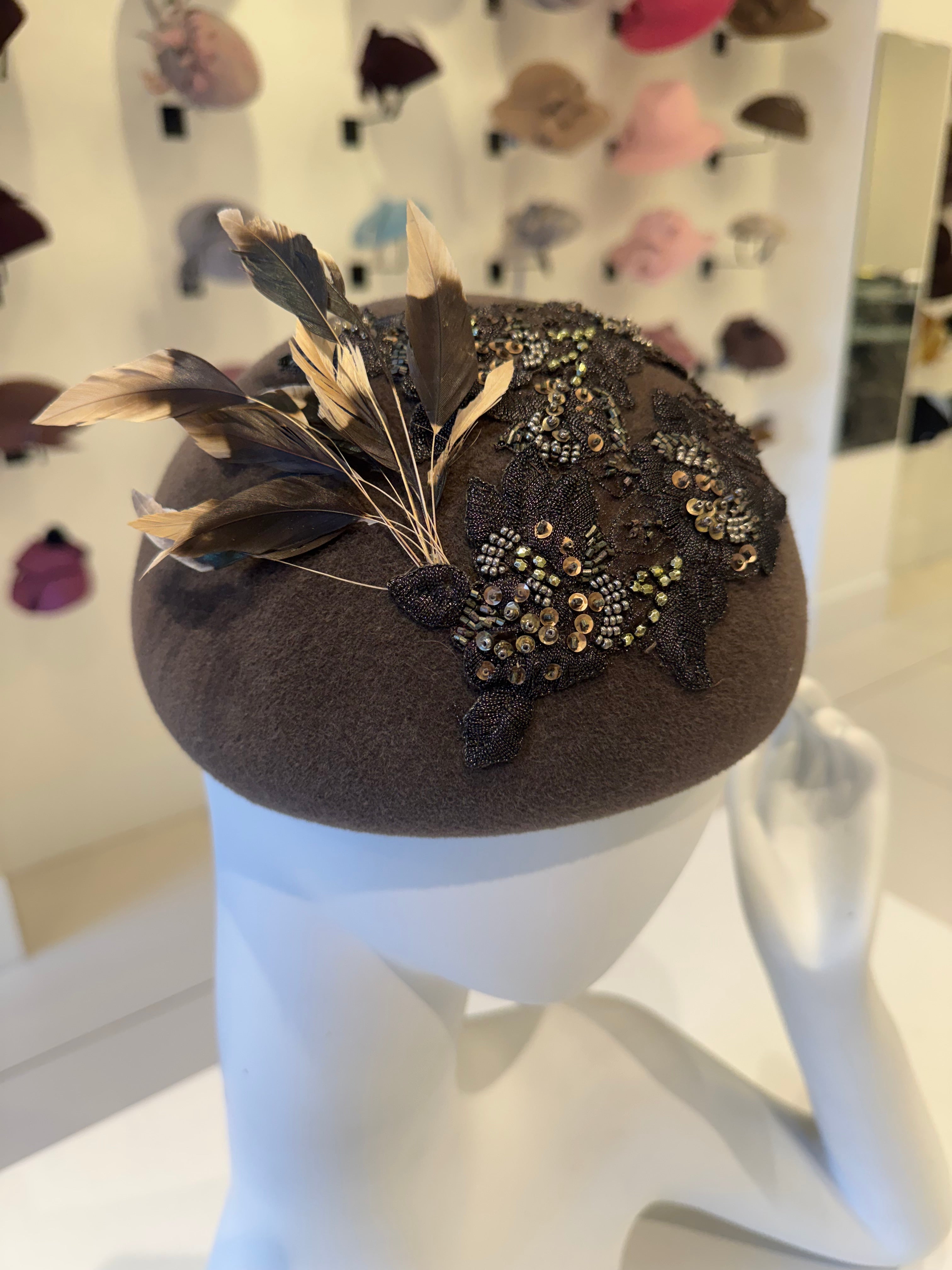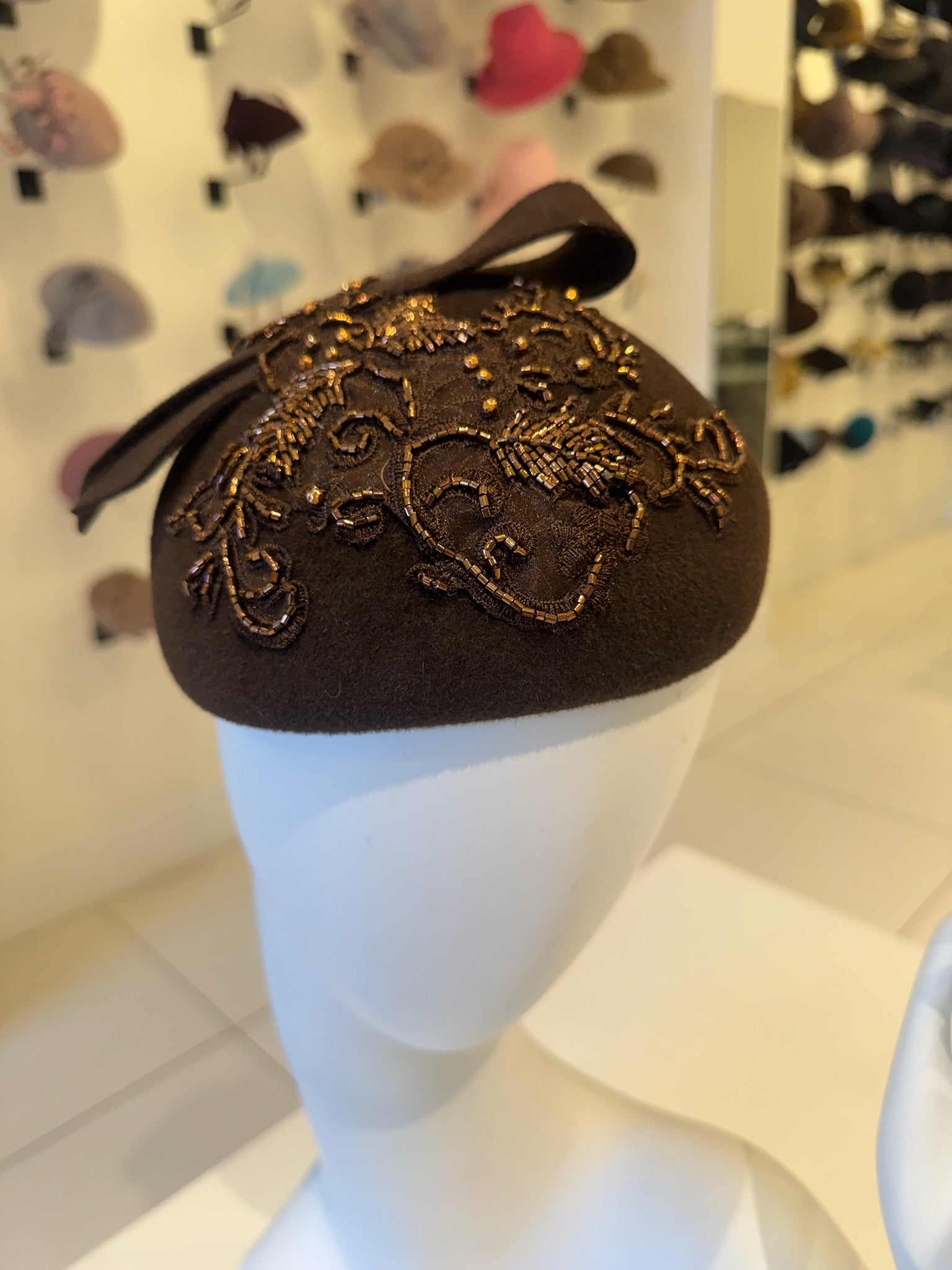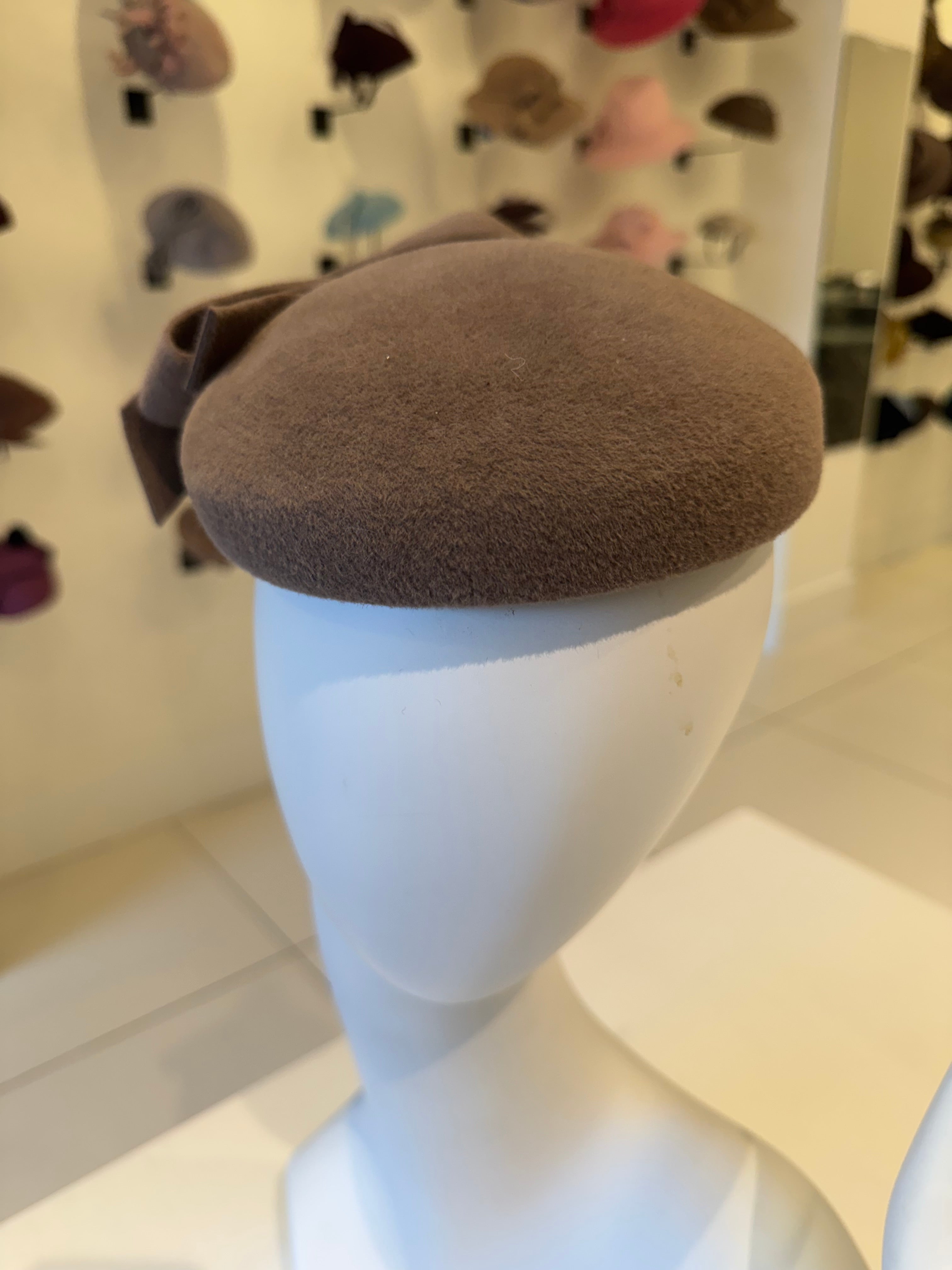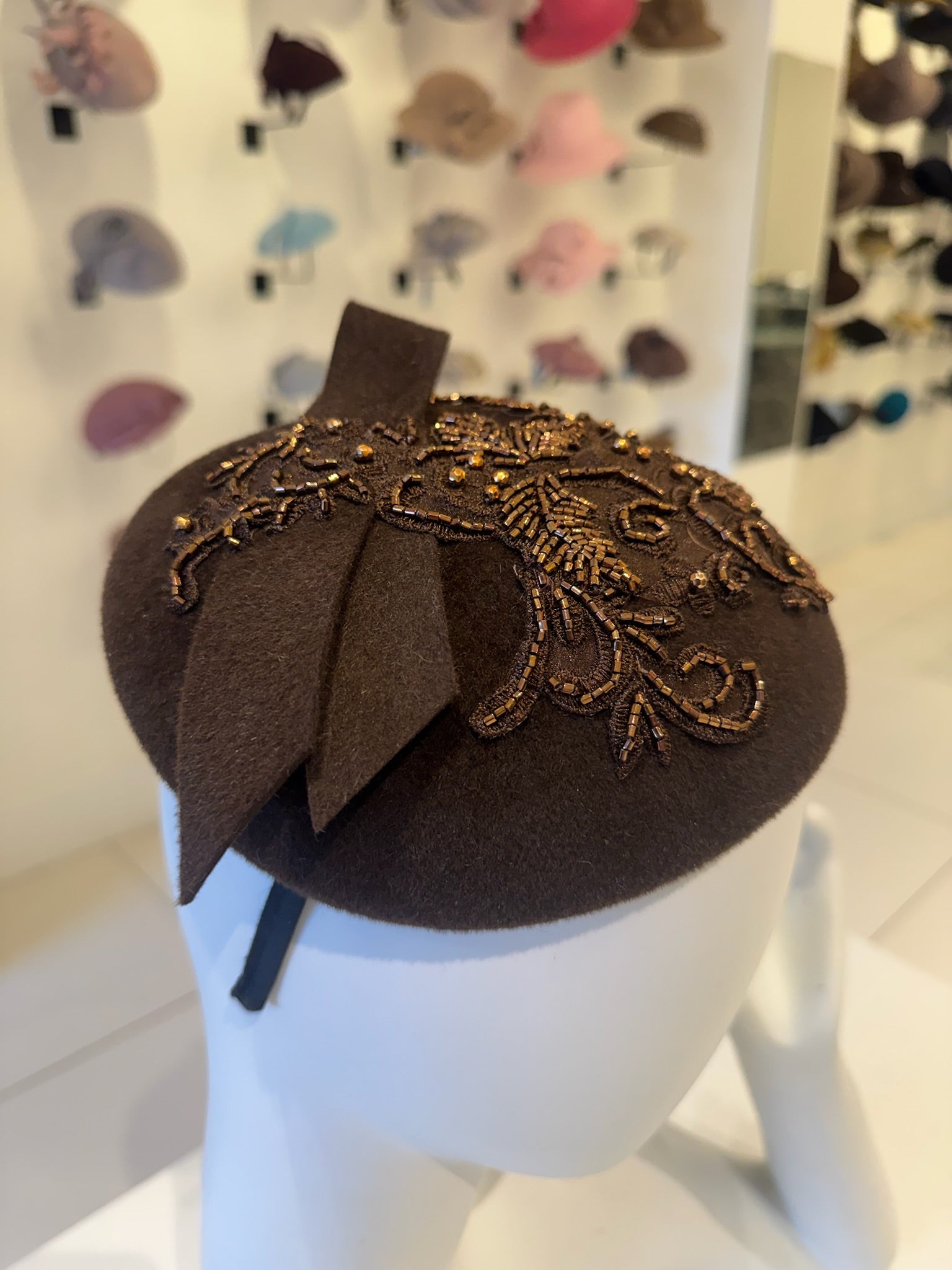 Chocolate Brown Velour Fascinator with Bow & Sequin Detail