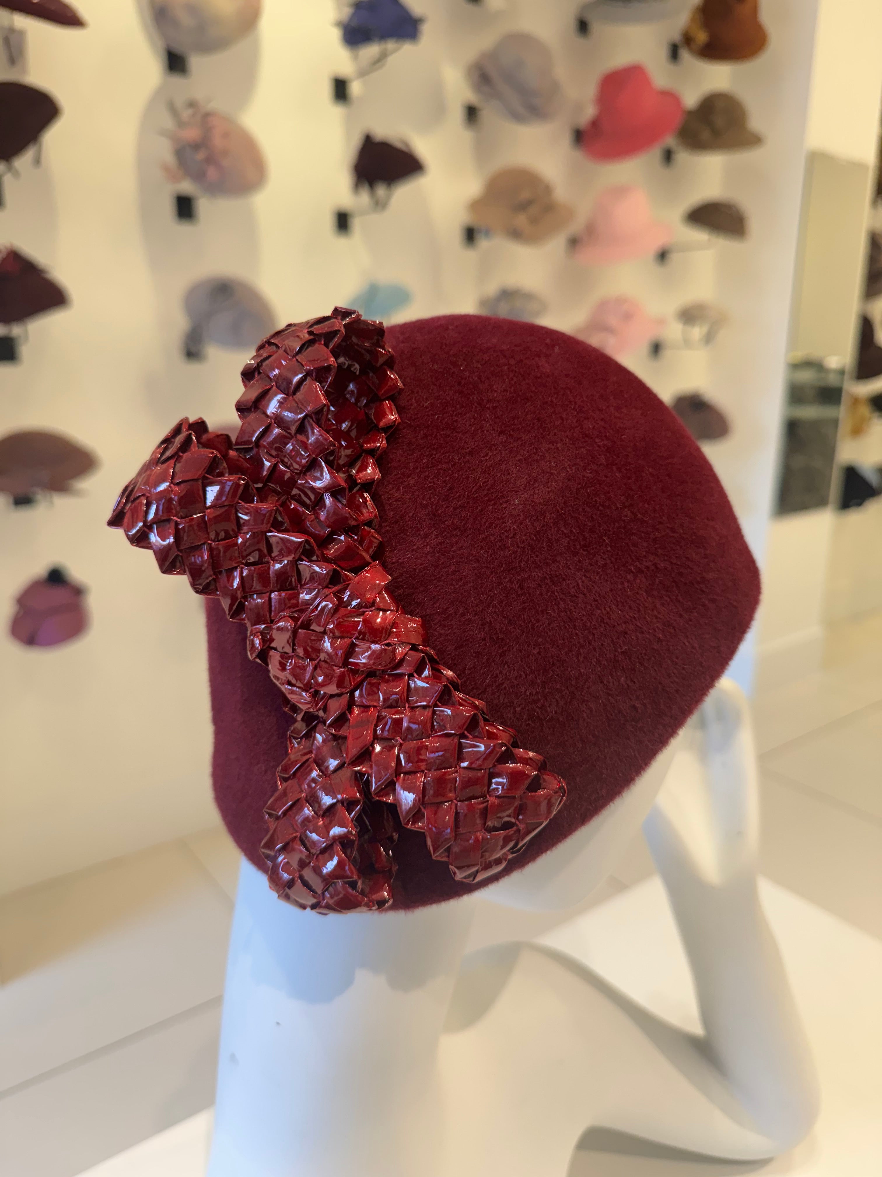 Bordeaux Velour Bow Fascinator with Veil Detail