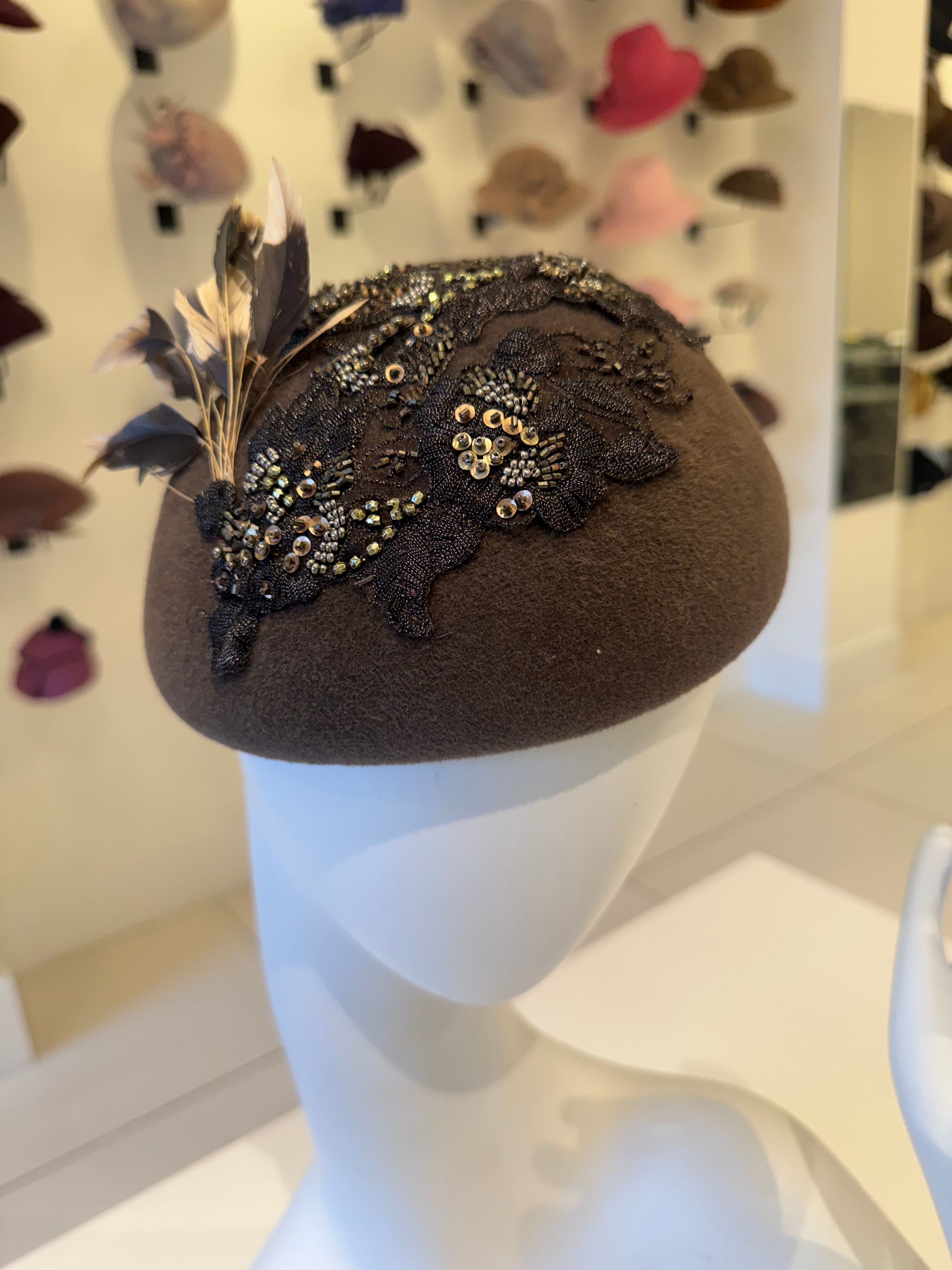 Chocolate Brown Velour & Sequin Lace Fascinator