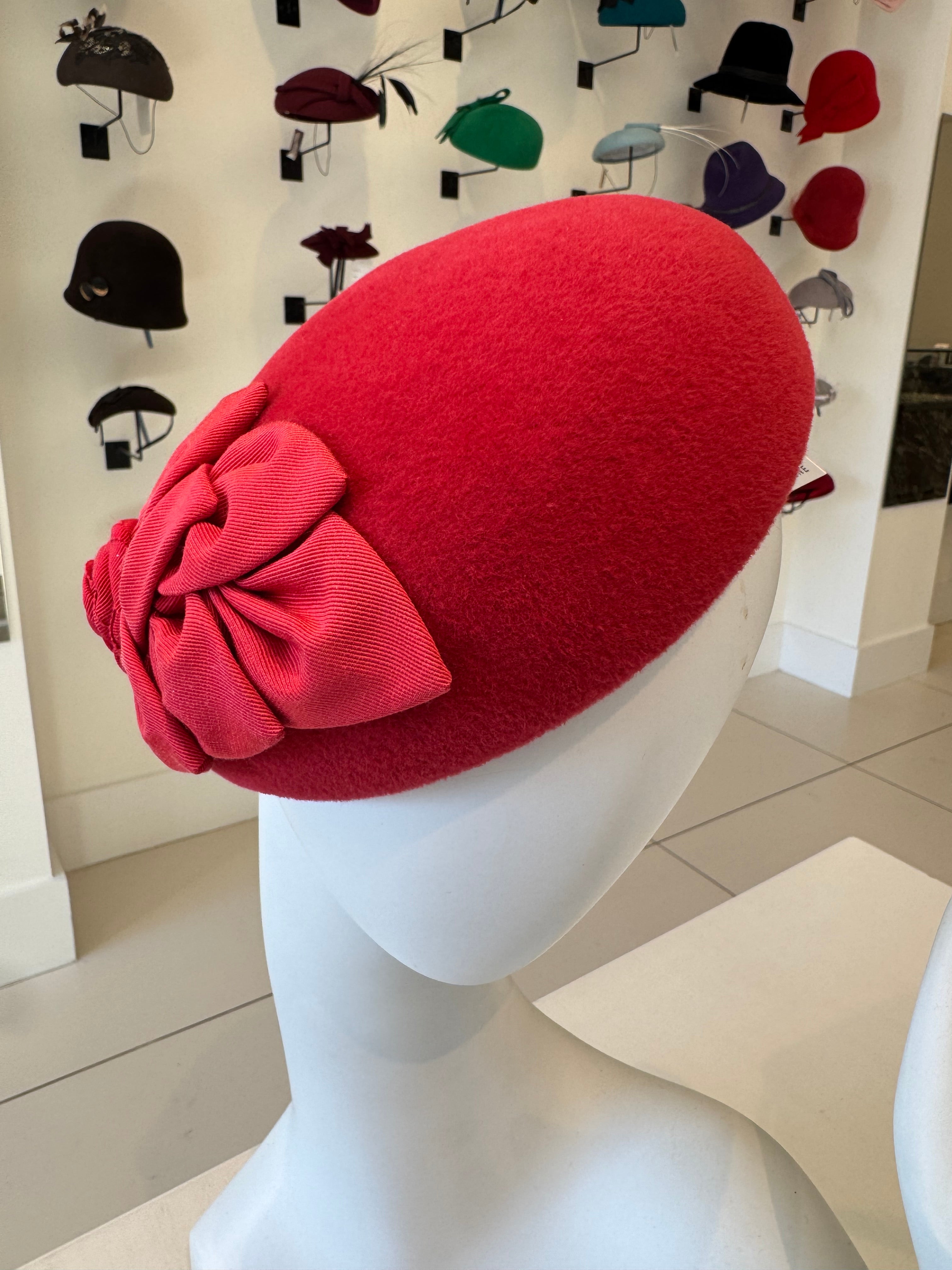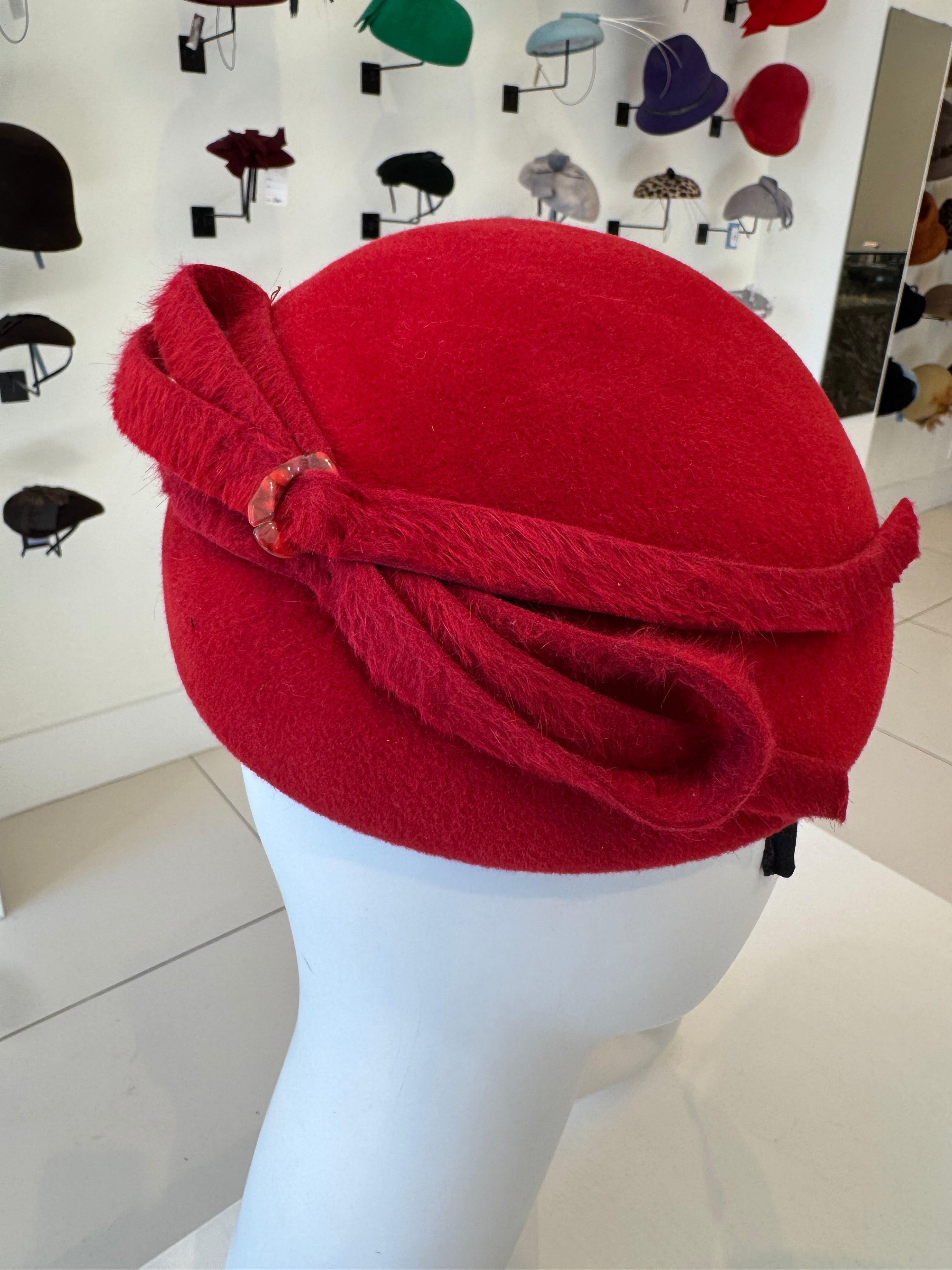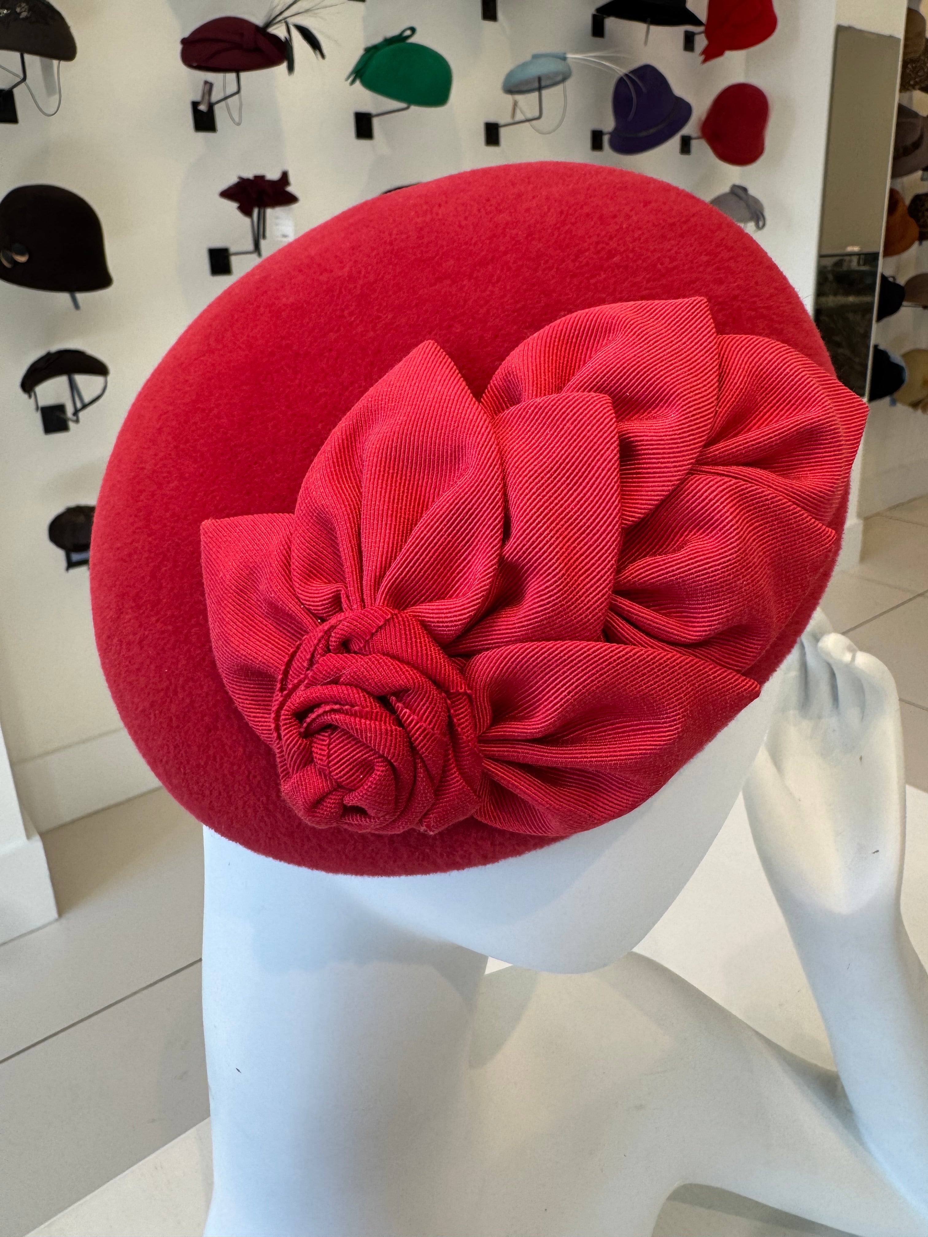 Red Beret With Pleated Grosgrain Trim & Pearl Detail