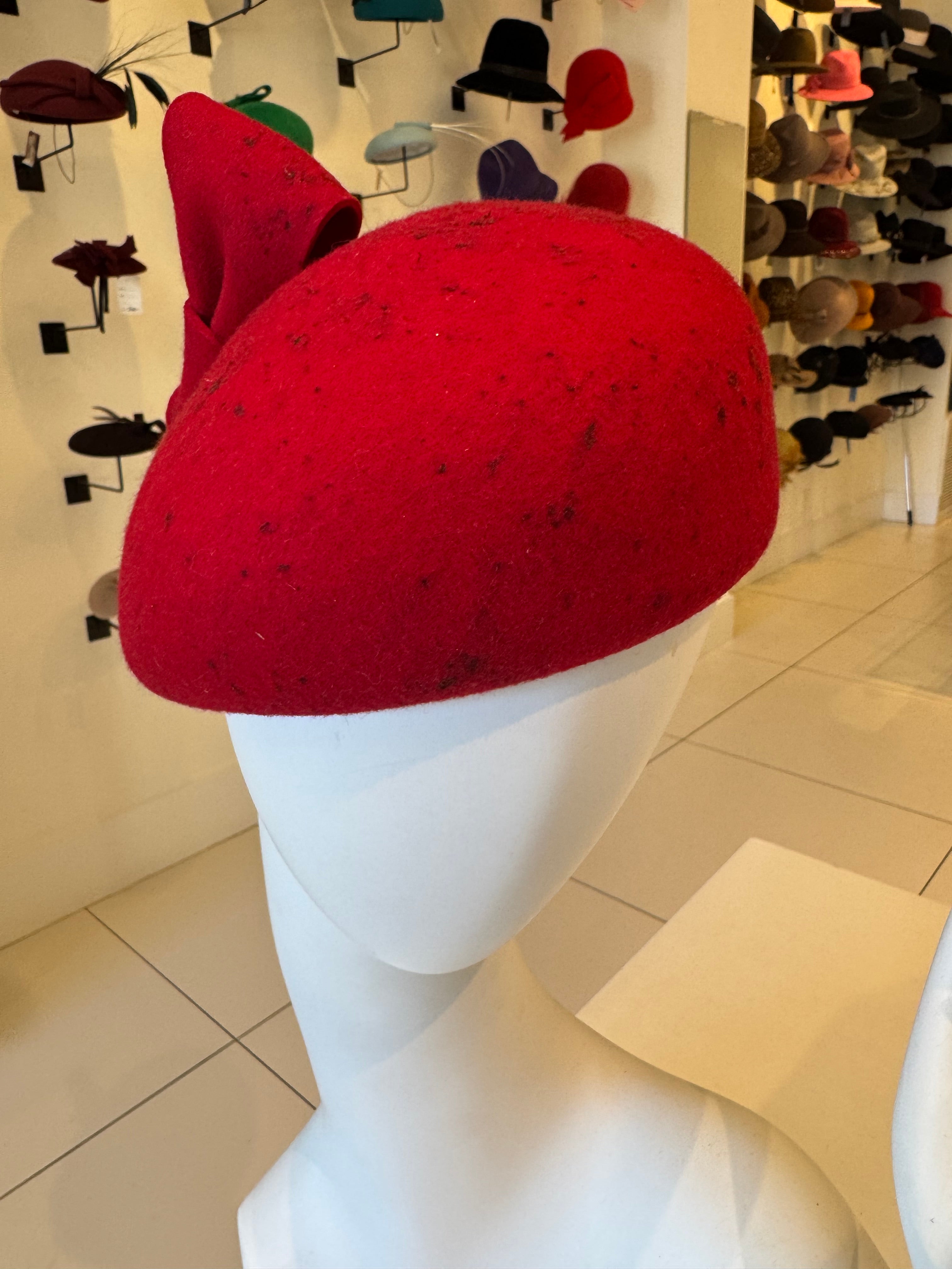 Speckled Red Velour Beret With Bow Trim