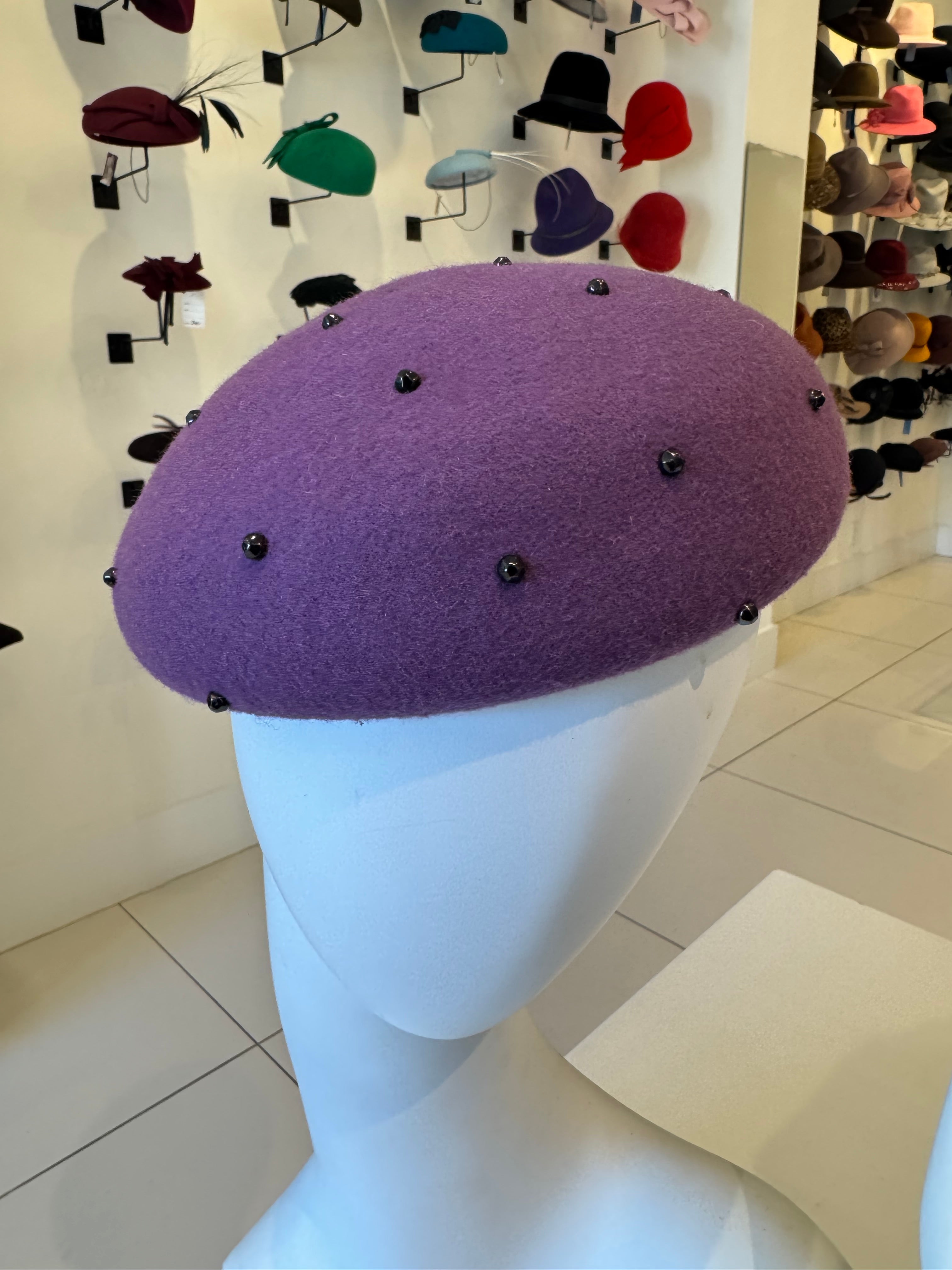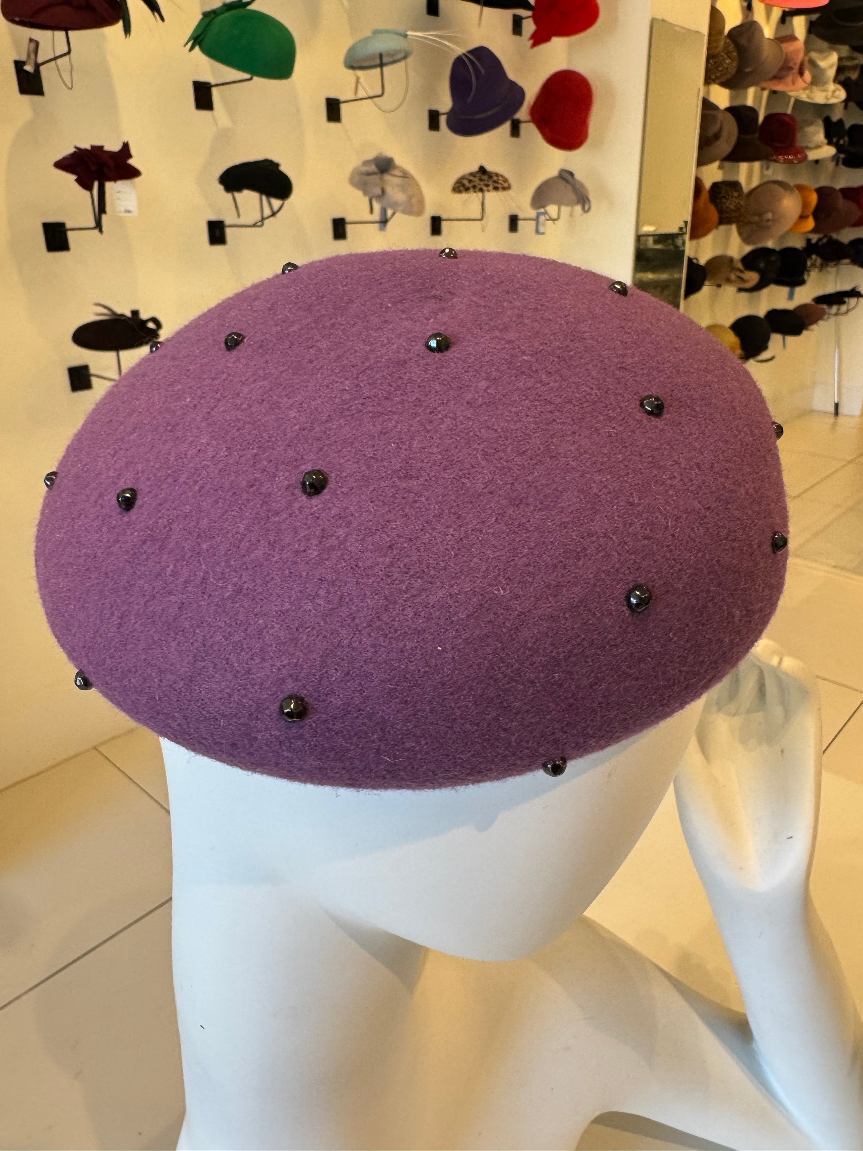 Purple Wool Felt Beret With Gems