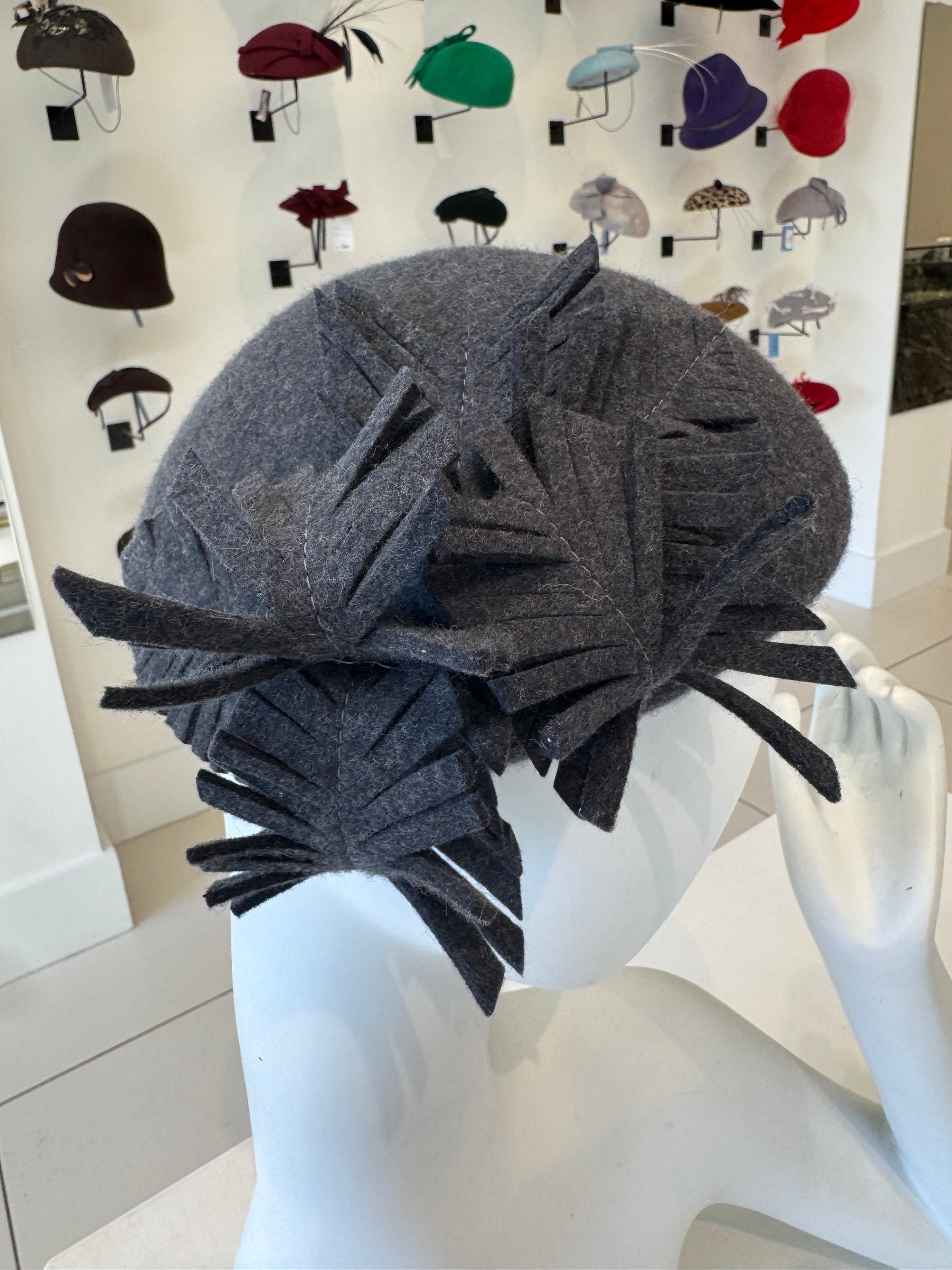 Charcoal Grey Wool Felt Fascinator With Leaf Trim