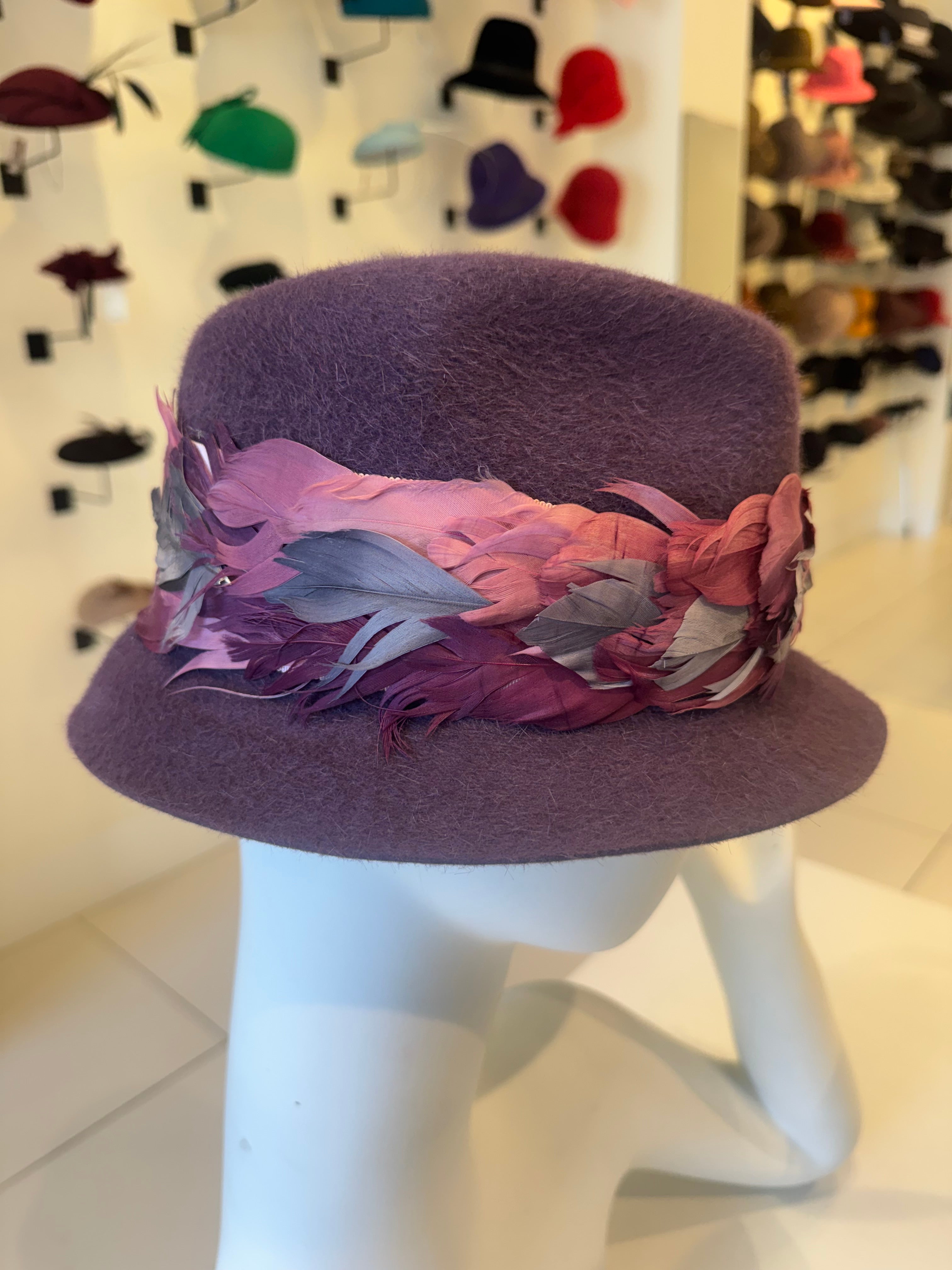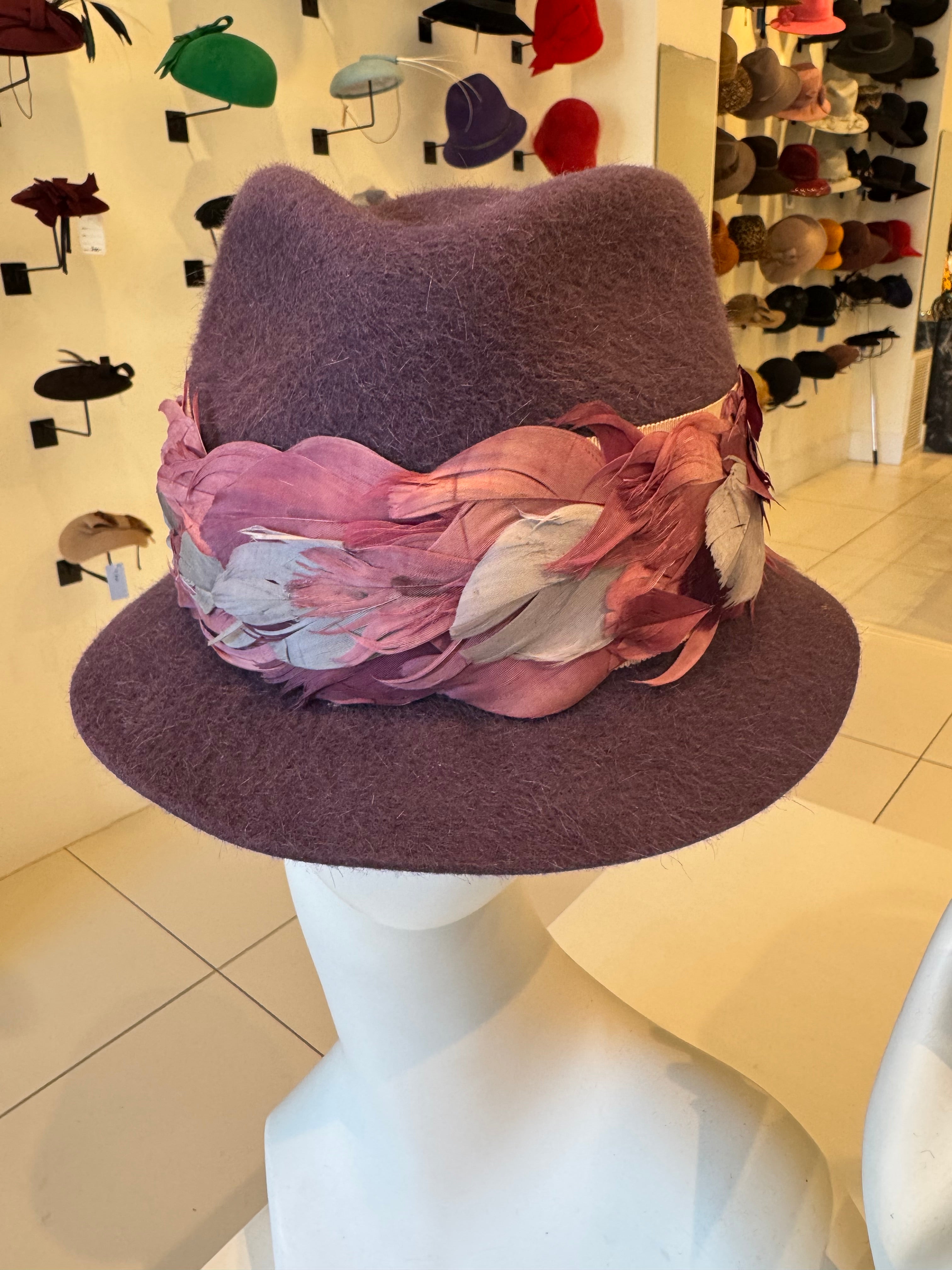 Purple Fur Felt Fedora with Feather Trim
