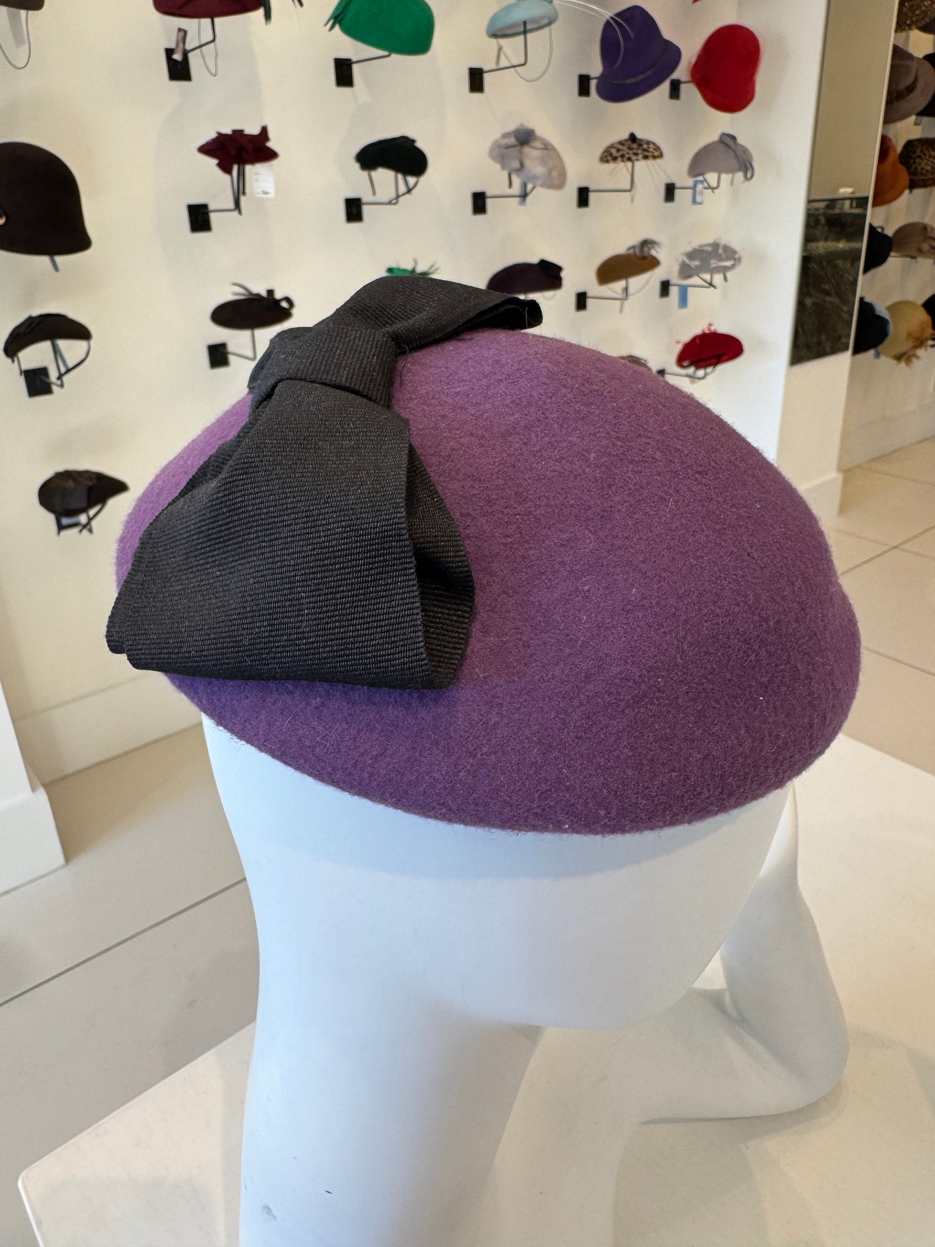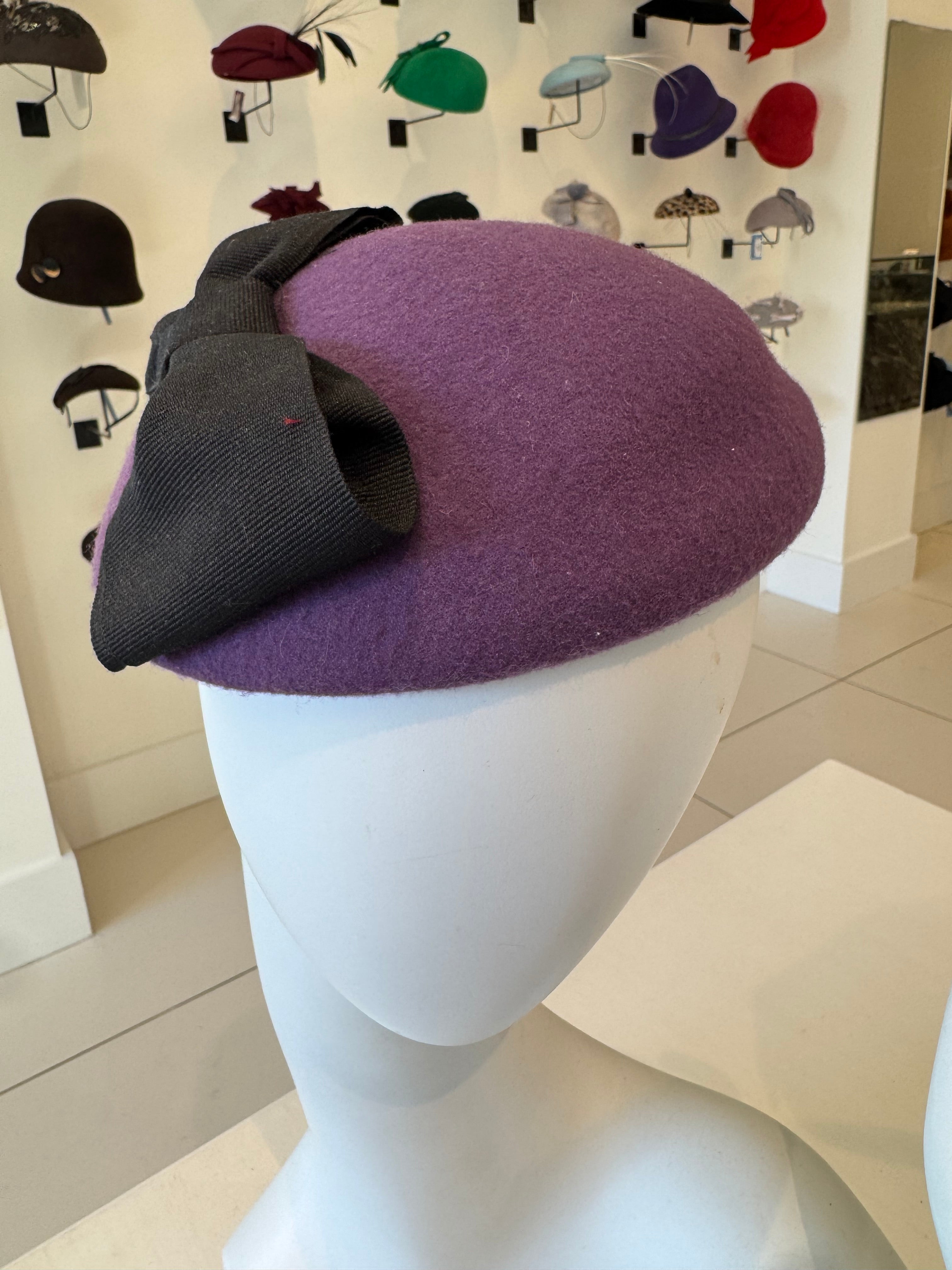 Purple Wool Felt Fascinator With Black Ribbon Bow