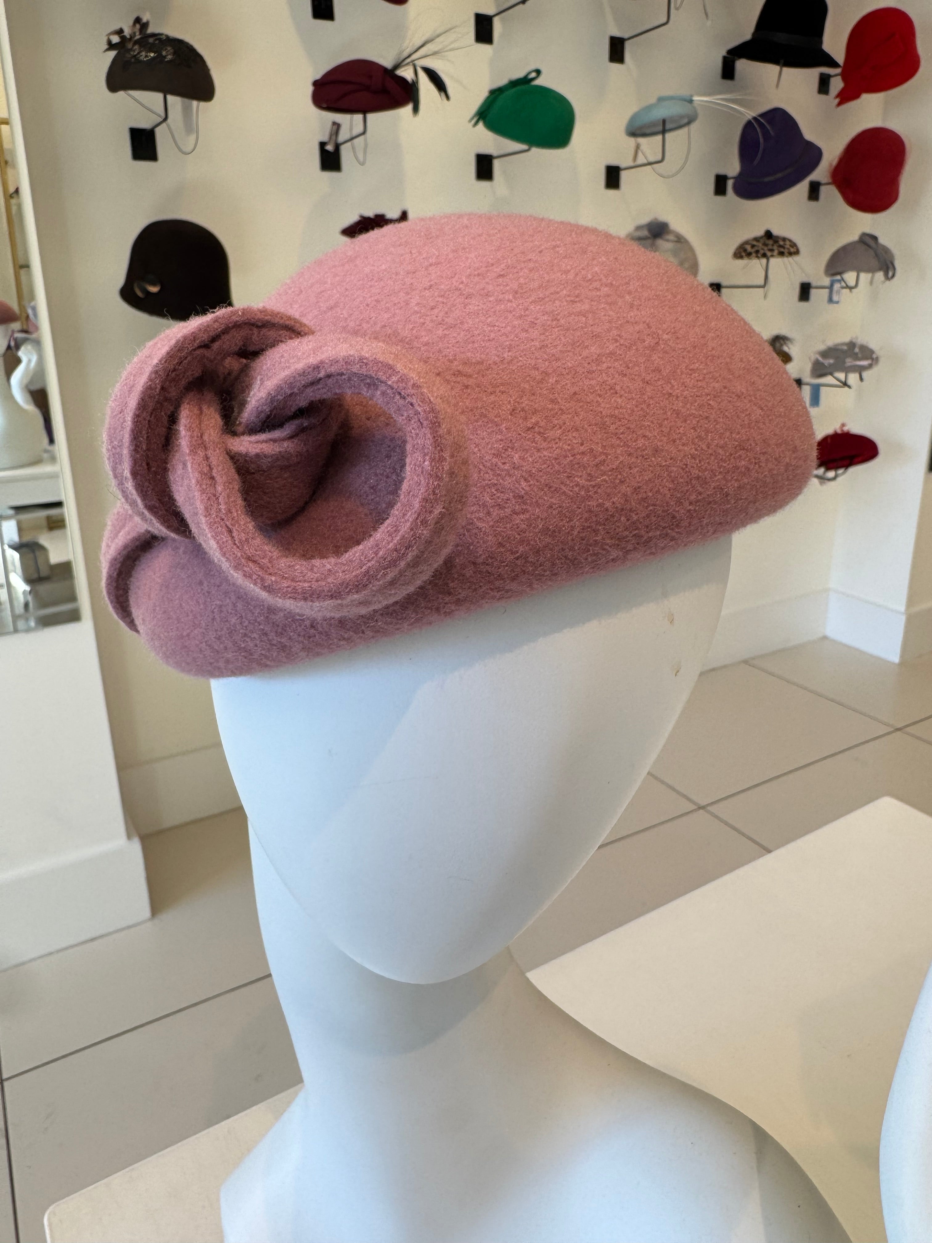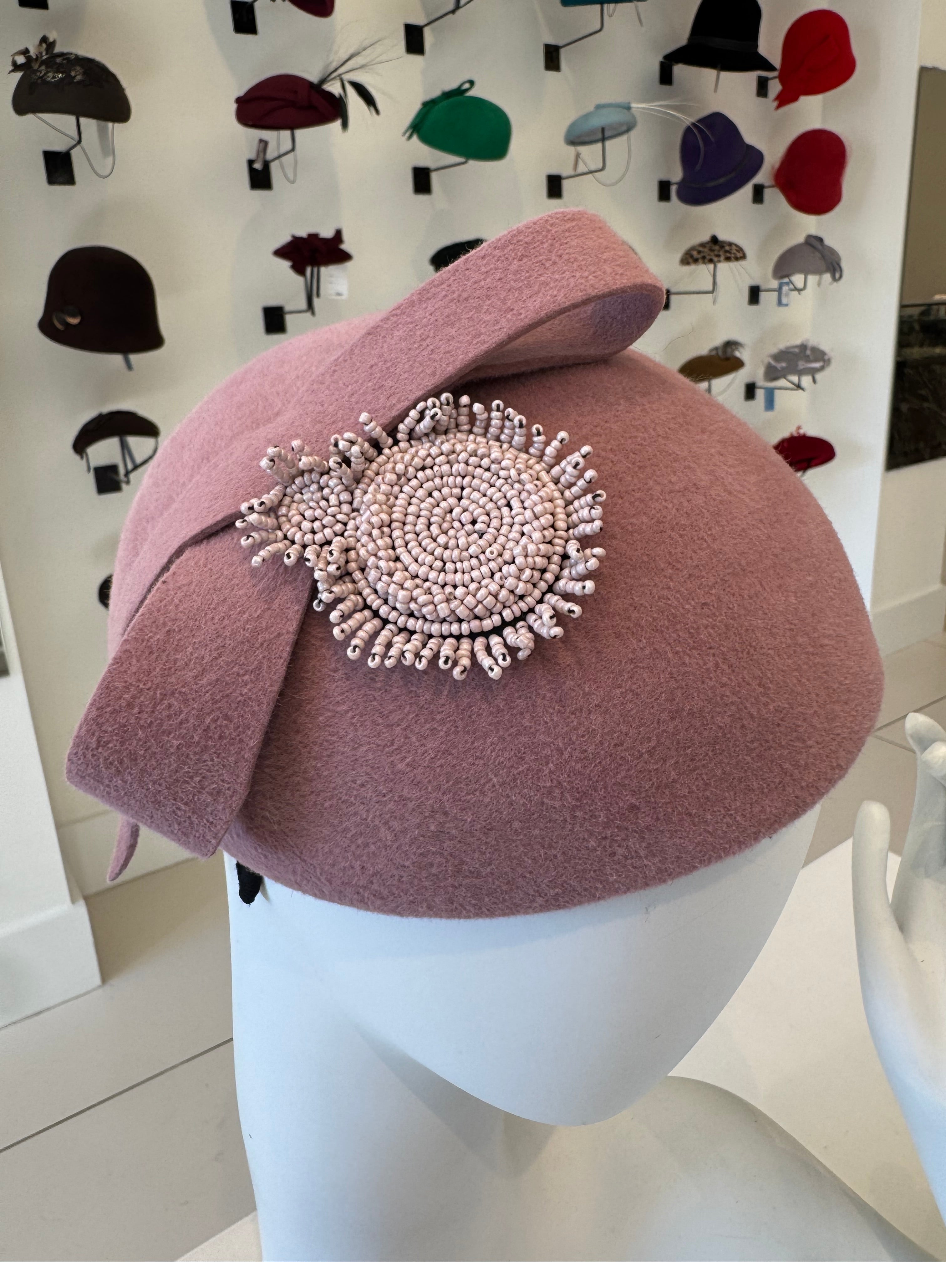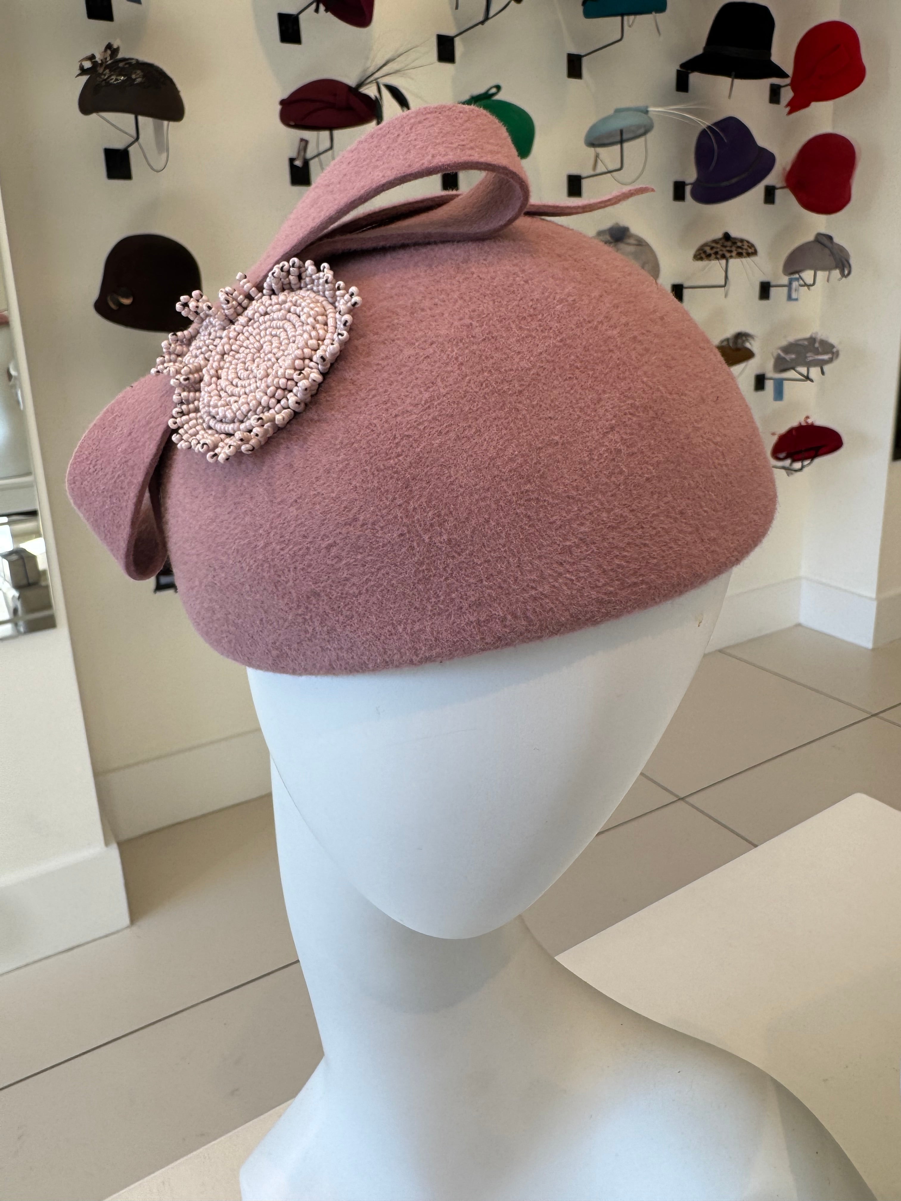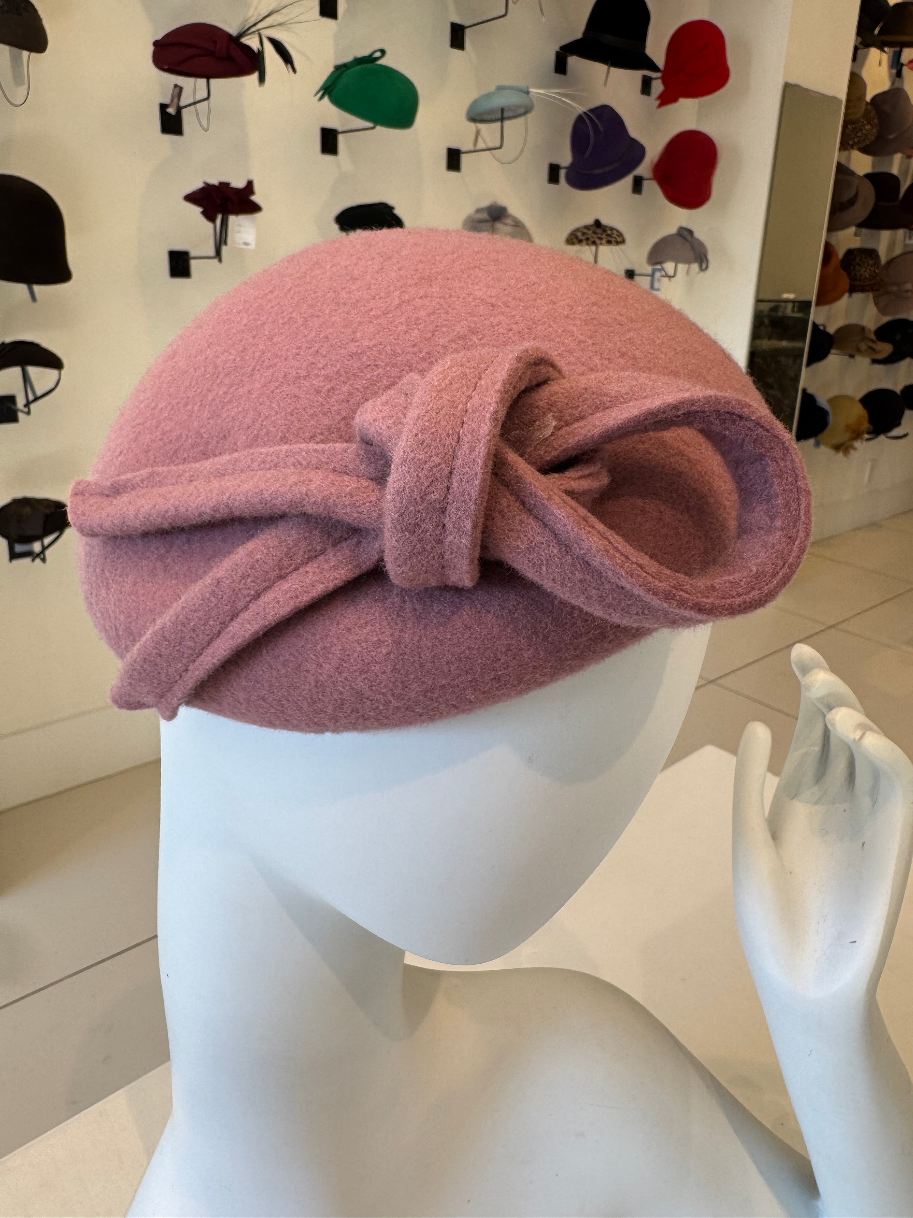 Dusty Pink Wool Felt Fascinator With Bow Trim
