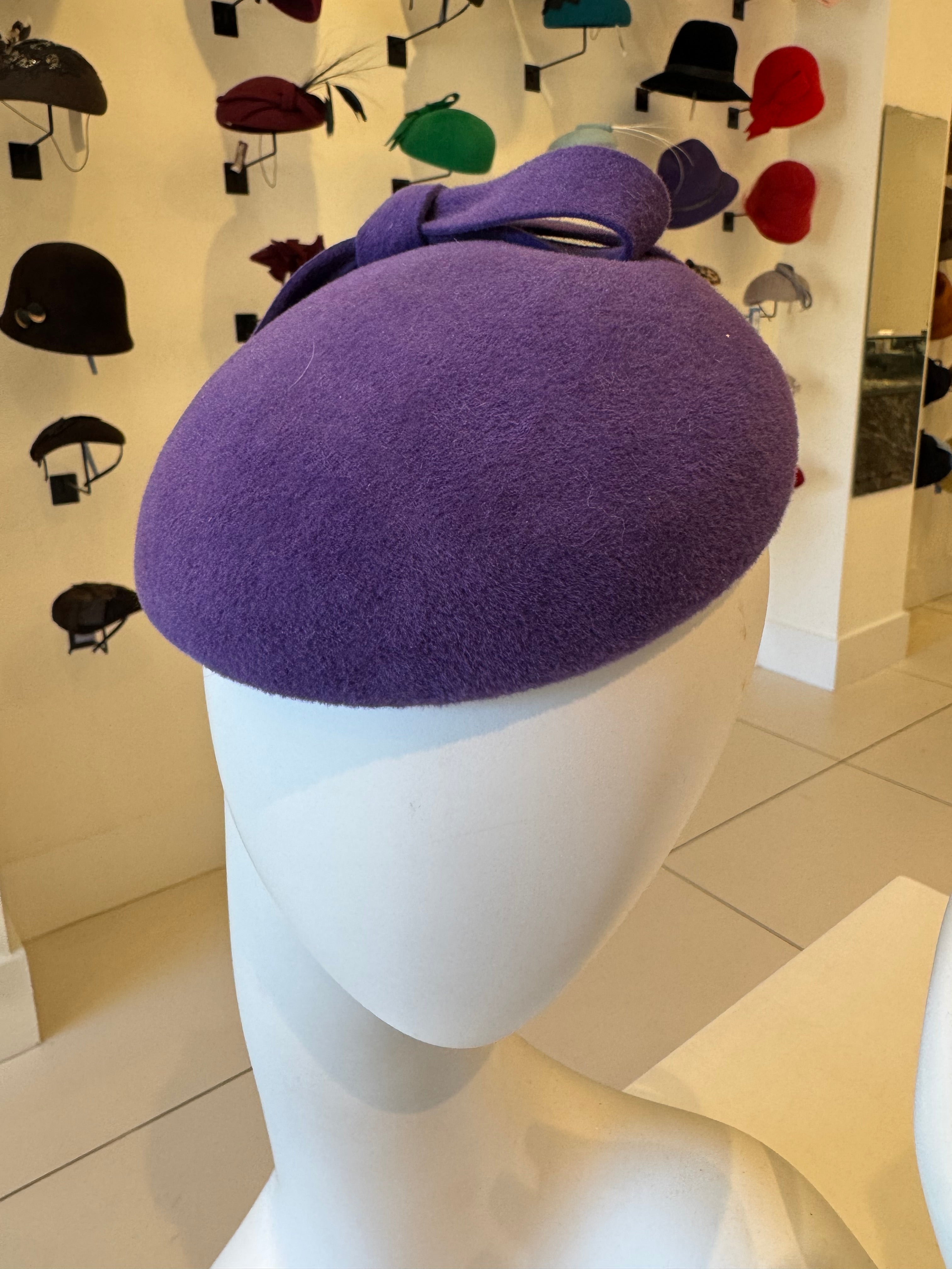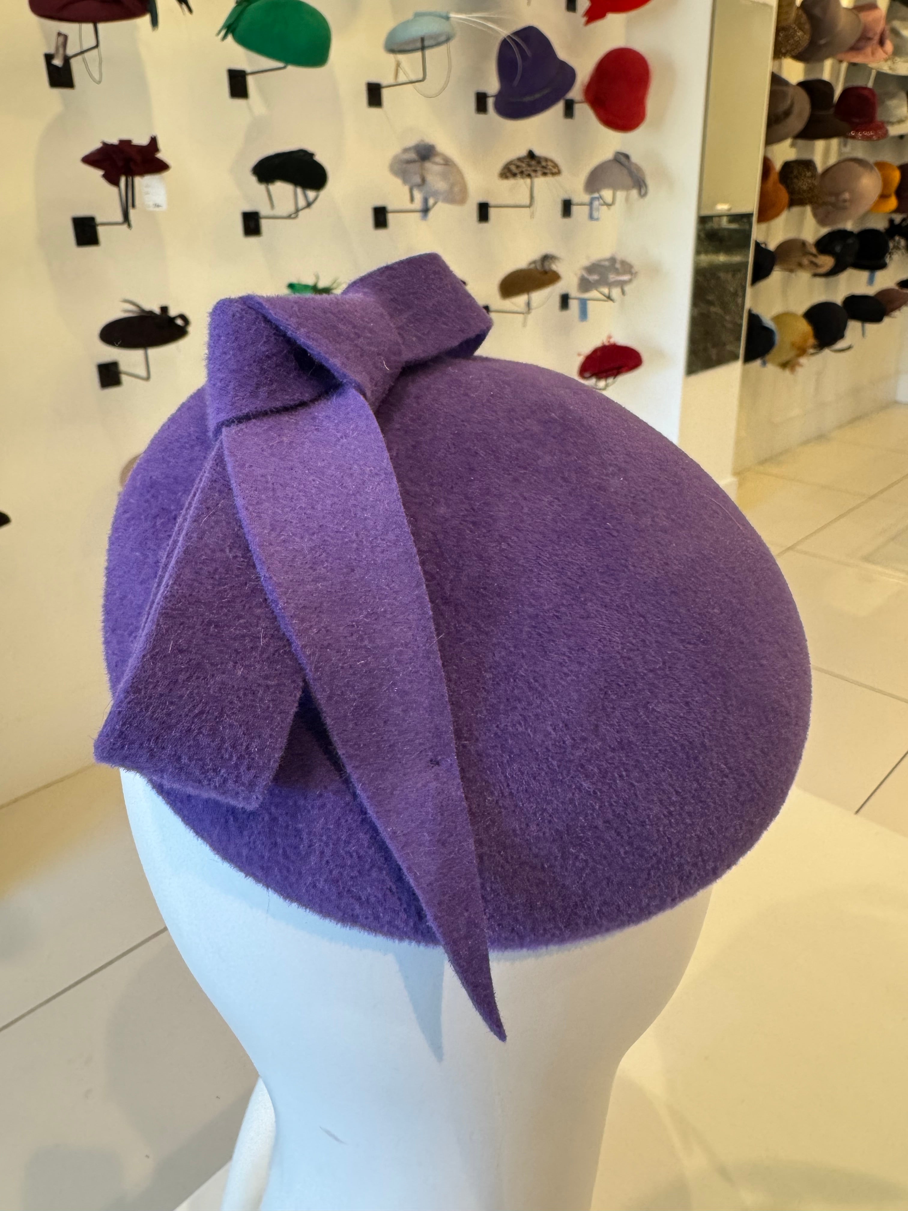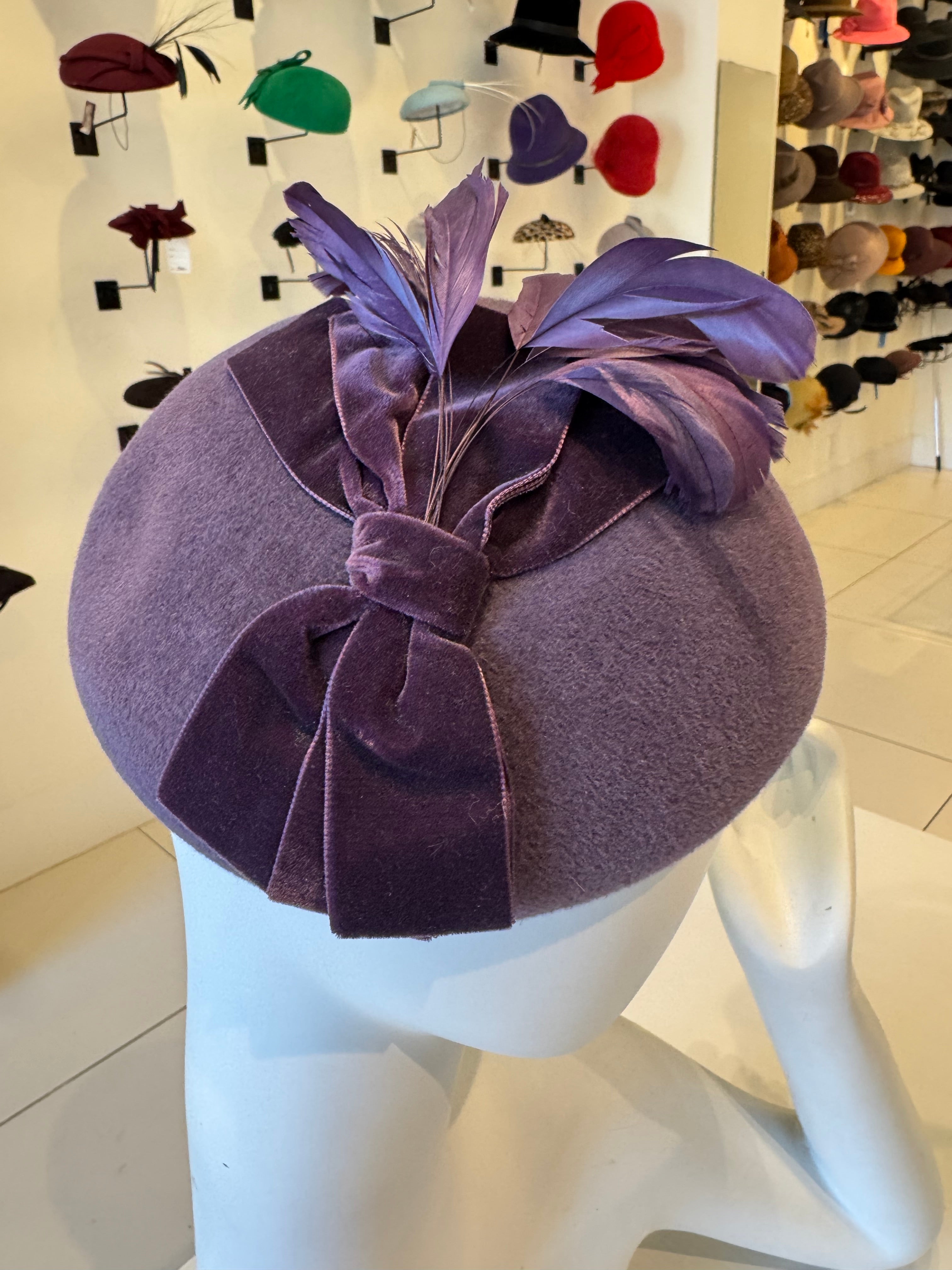Purple Velour Fascinator With Bow Trim